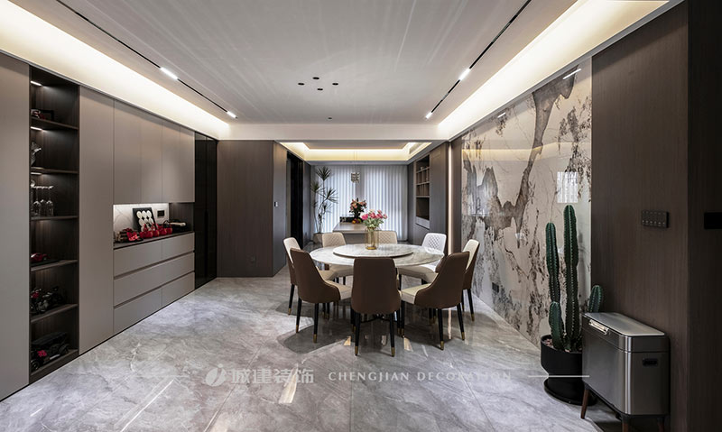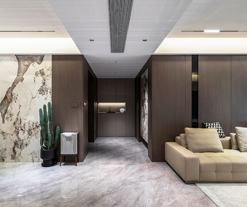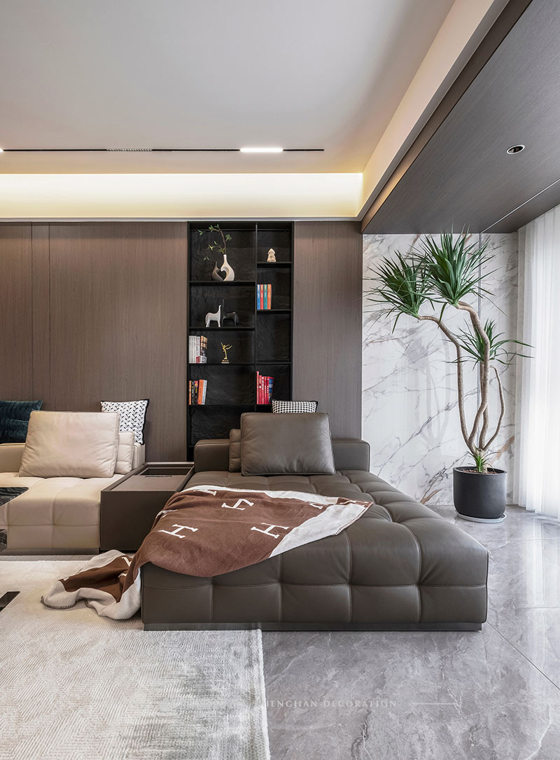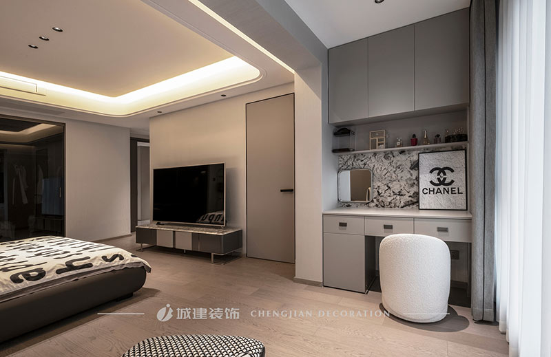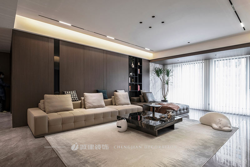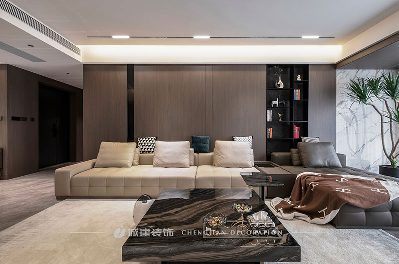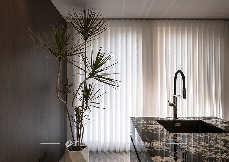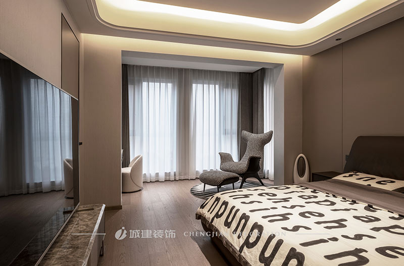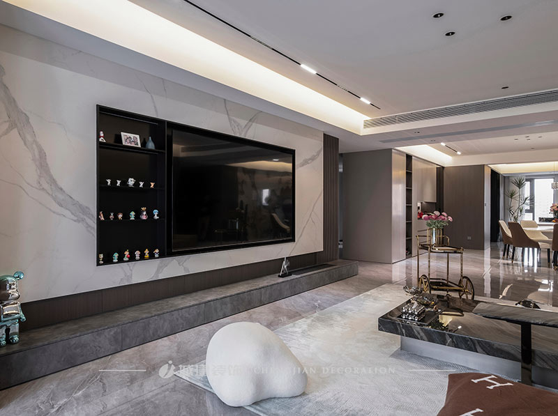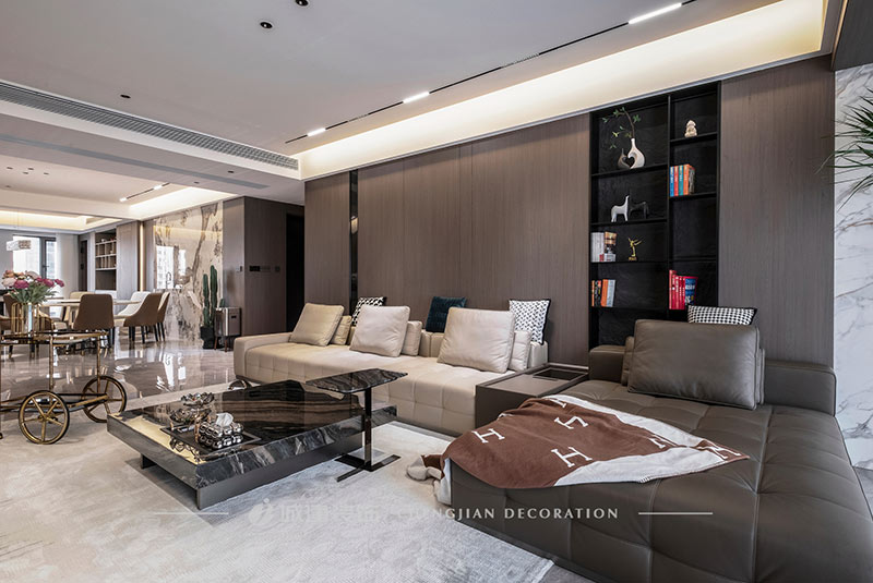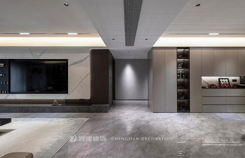 本案是杭州宋都陽光國際五室兩廳的大平層,選擇現(xiàn)代風格以極簡的線條減輕元素堆砌的擁擠感,以局部點睛設計提升空間格調。