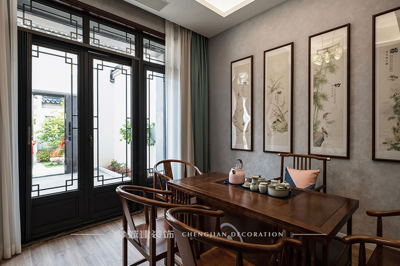 案例風(fēng)格:新中式/案例戶型:排屋/戶型面積:460.00㎡