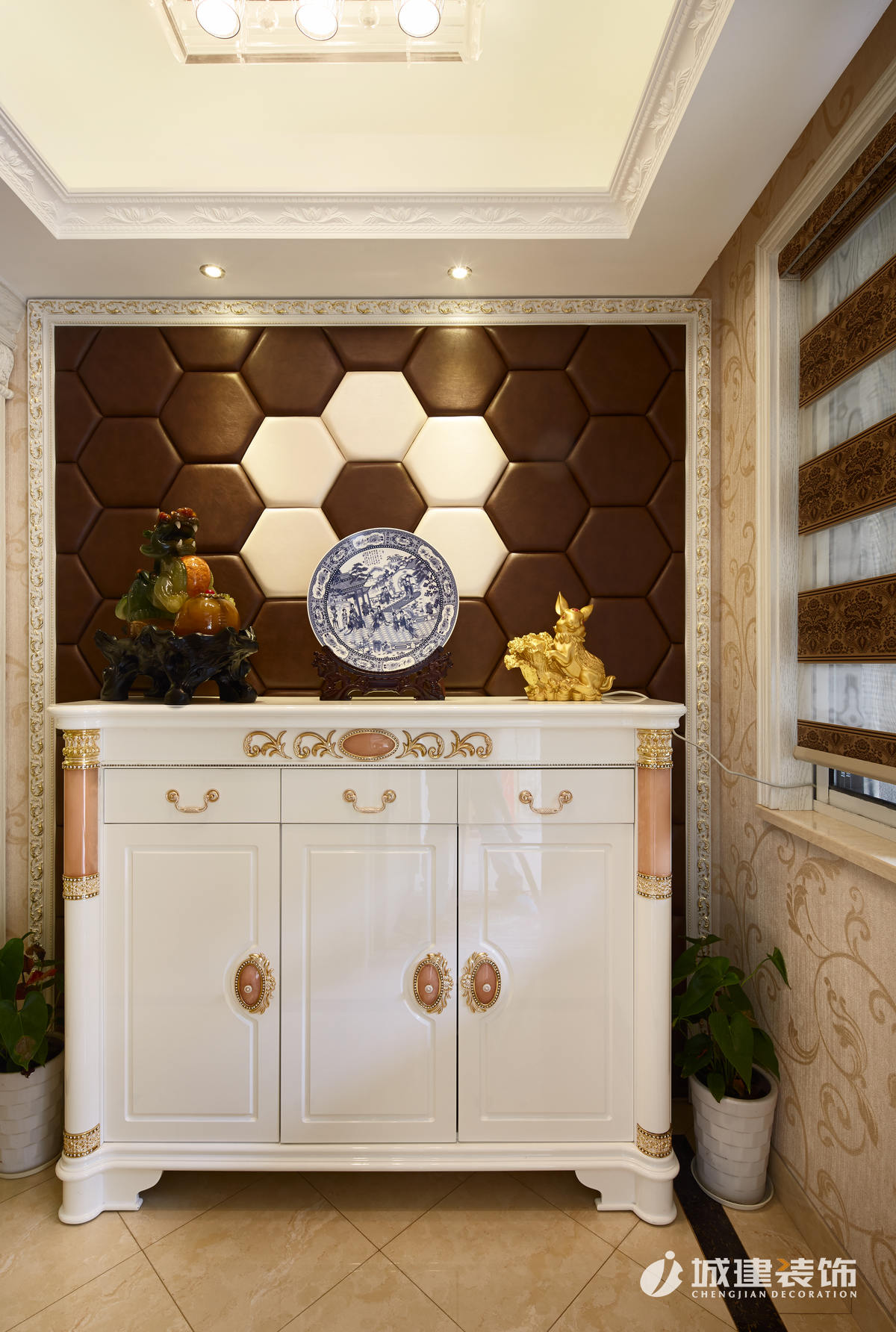 而簡歐風格繼承了傳統(tǒng)歐式風格的裝飾特點,吸取了其風格的“形神”特征,在設計上追求空間變化的連續(xù)性和形體變化的層次感,室內多采用帶有歐式的壁紙、地毯、窗簾、及古典裝飾油畫,體現(xiàn)華麗的風格。家具門窗多漆為白色,畫框的線條部位裝飾為線條或金邊,進口的玉作為背景,在造型設計上既要突出凹凸感,又要有優(yōu)美的弧線。