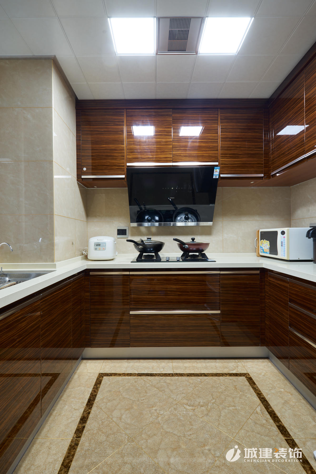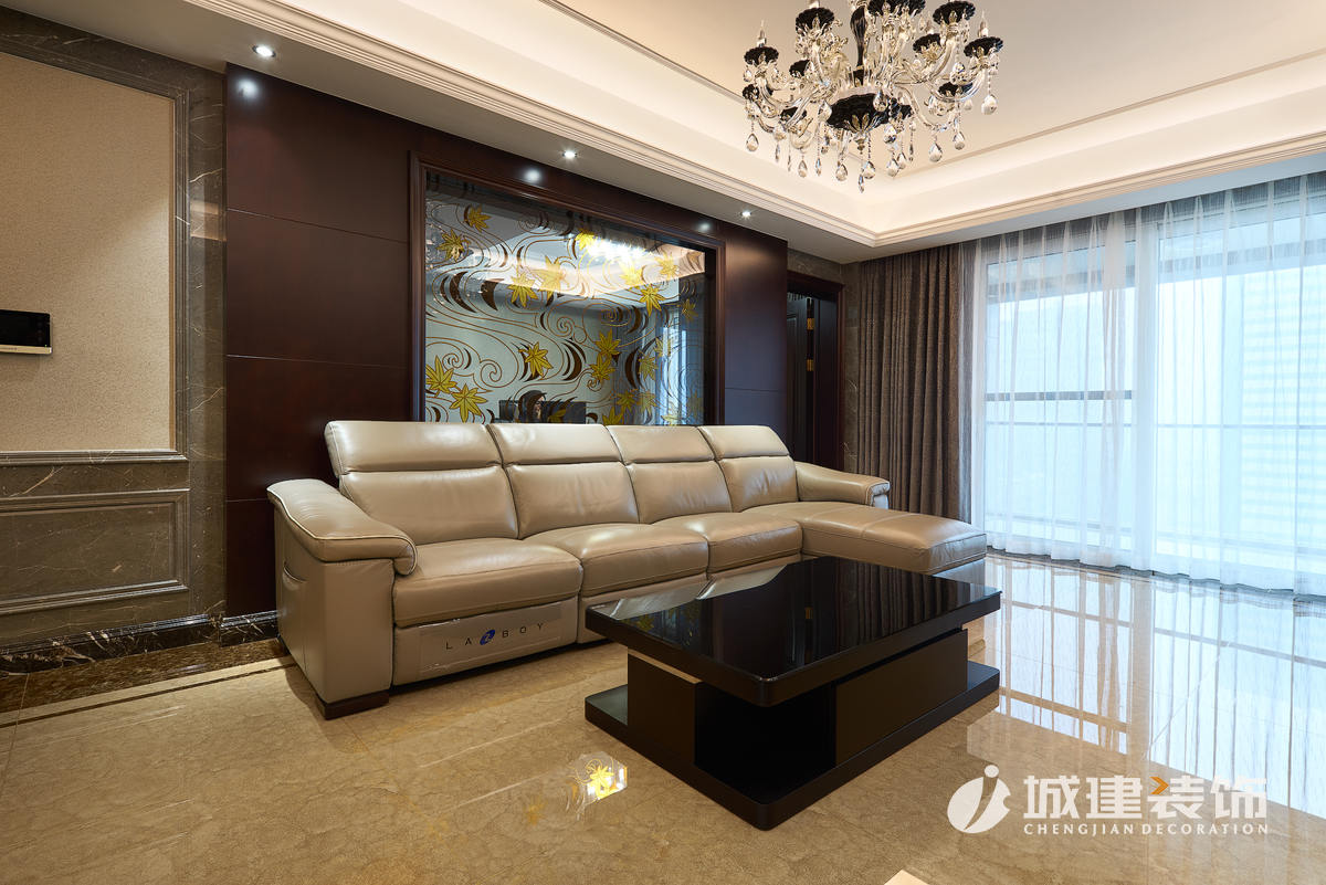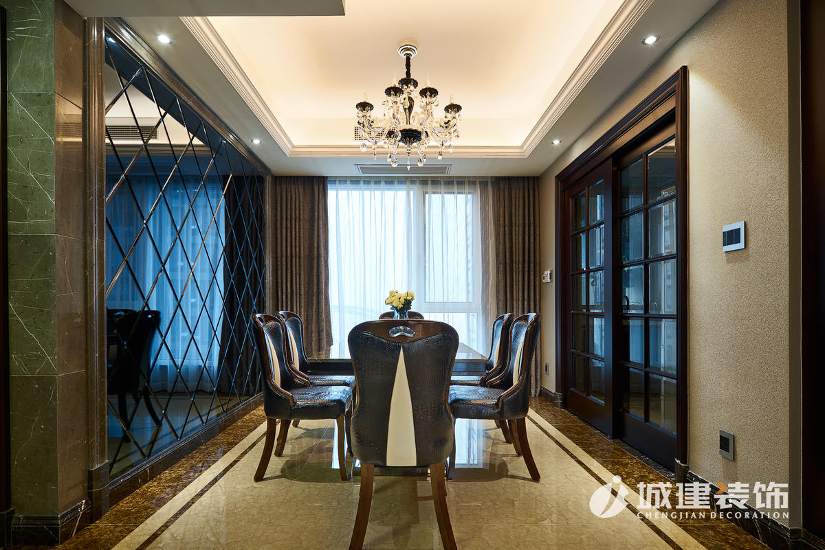 原客餐廳位于一線,一個區(qū)域劃分出兩塊功能區(qū)域,顯得過于擁擠,經(jīng)再三考慮后,放棄了毗鄰廚房的一室,直接設(shè)計成餐廳區(qū)域,臨窗落成擴(kuò)大了餐廳的視野,客廳也因此擴(kuò)大??筒蛷d做為公共區(qū)域,通過石材的鋪設(shè)運(yùn)用,沒有過多的花哨裝飾,兩個區(qū)域都體現(xiàn)出了戶主的干練穩(wěn)重。