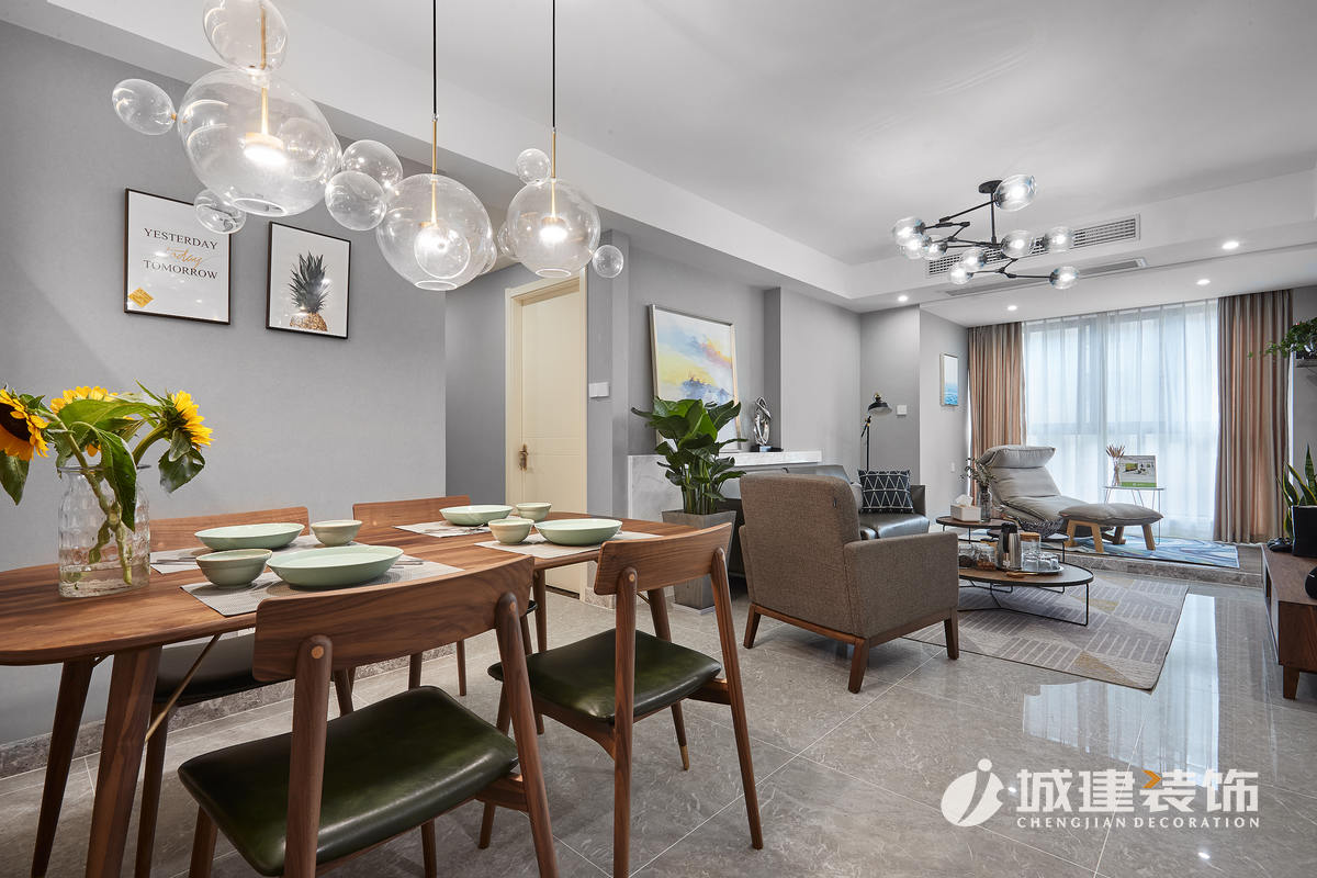 開放式格局餐廳,看起來更為寬敞明亮。木色餐桌與個性吊燈,現(xiàn)代與自然的元素相結(jié)合,利用廚房一側(cè)的墻體做成內(nèi)嵌式小酒柜,滿足功能的同時也不失格調(diào)。