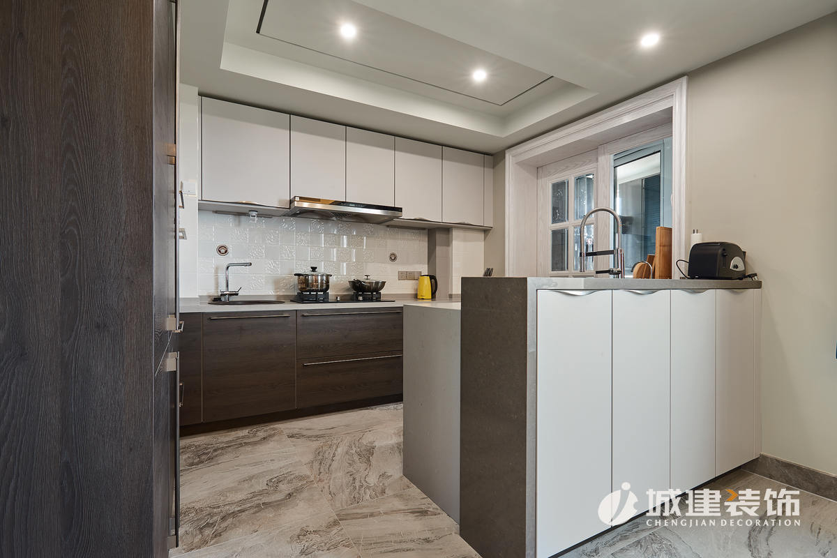 現(xiàn)代開放式的廚房,讓用餐區(qū)域更明亮,家人、朋友聚餐時(shí)互動(dòng)性更好。