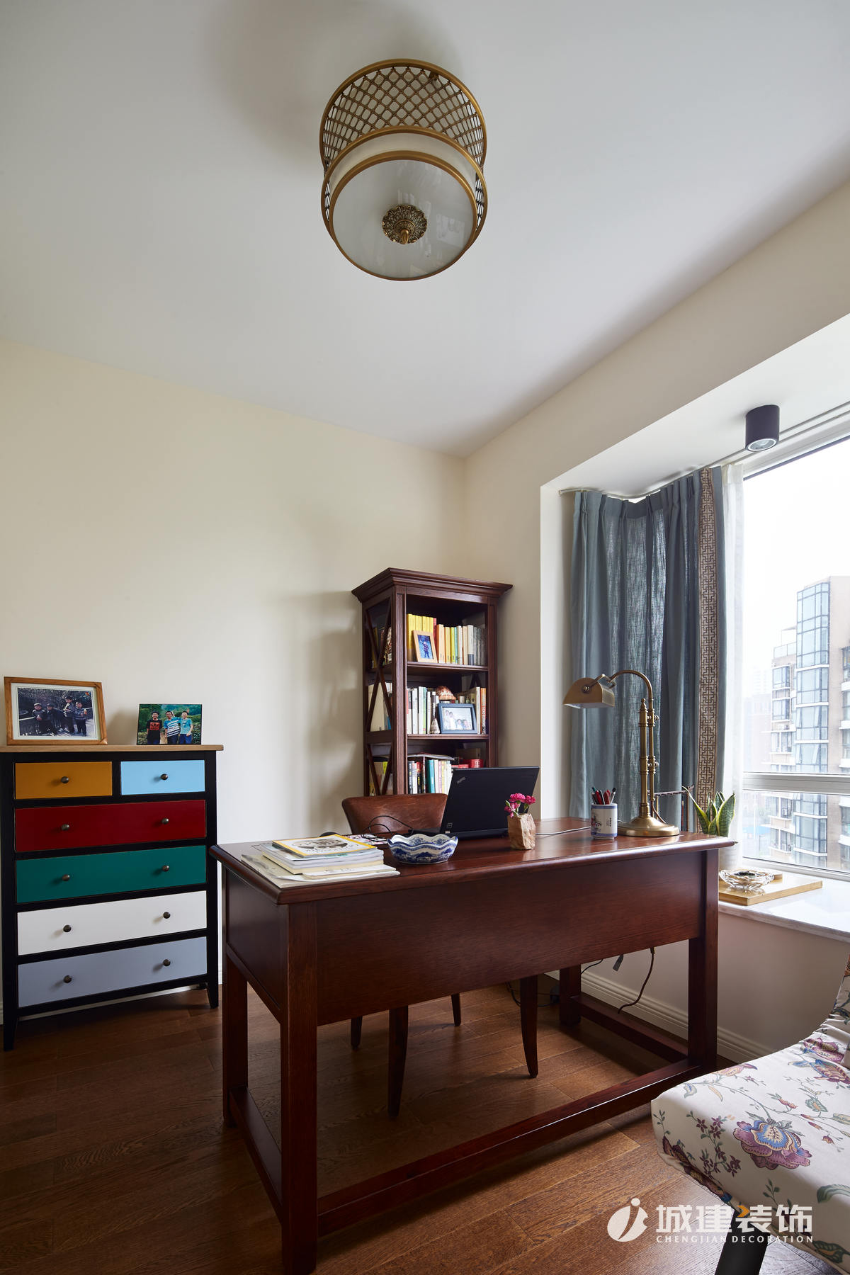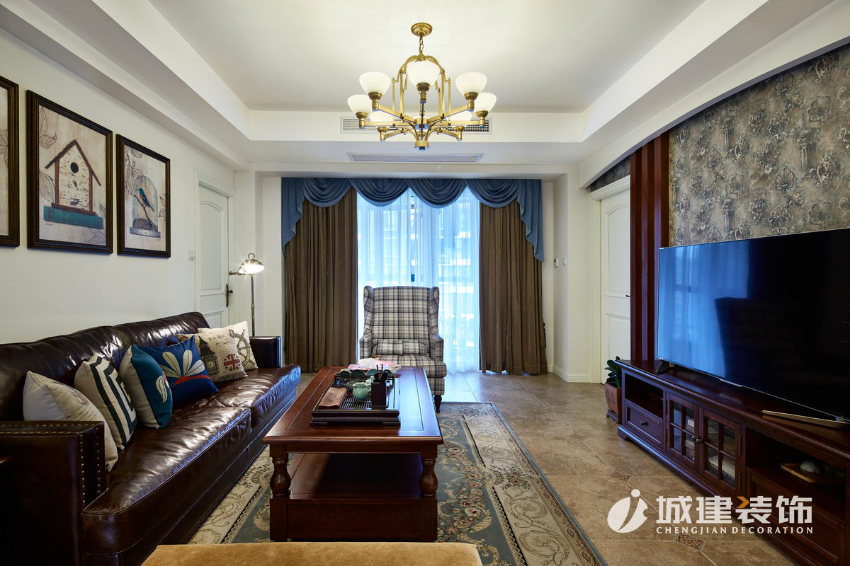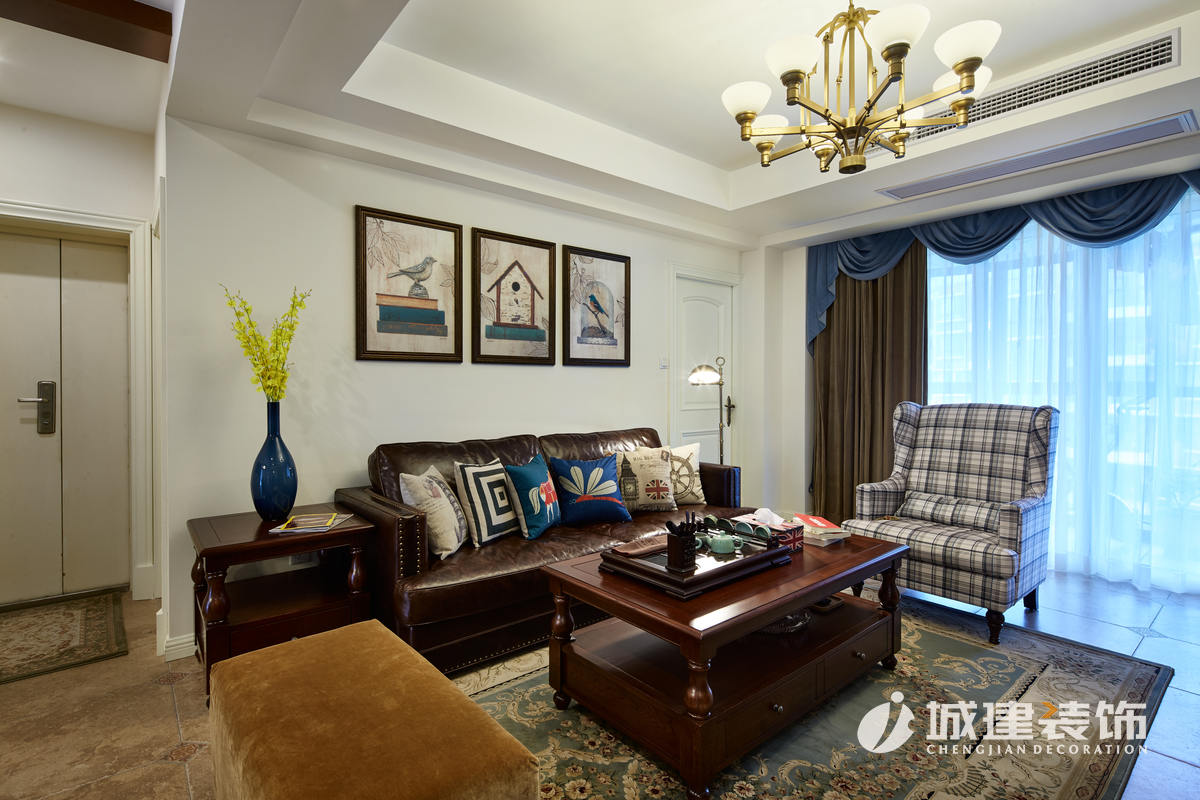 本案整體采用素色基調(diào)的美式風(fēng),初入玄關(guān)時花色壁紙、亮眼的向日葵立馬映入眼簾,美不勝收。餐廳處特色的燈具、美式風(fēng)情的燈,一家人的照片墻,處處透著溫馨氣息??蛷d選用美式常用的皮質(zhì)沙發(fā)和布藝沙發(fā),背景的三幅掛畫同樣彰顯美式風(fēng)格,黃色跳舞蘭提高了整個空間的層次感,靈動耀眼。主次臥中原戶型兩個飄窗在設(shè)計過程中都保留了下來,成為臥室主人或坐或臥的休閑區(qū)域,倚窗而坐焚一杯清茶,欣賞室外美景,想想就讓人心動。