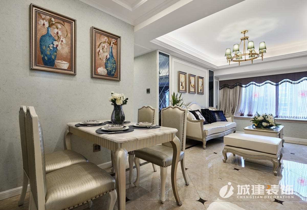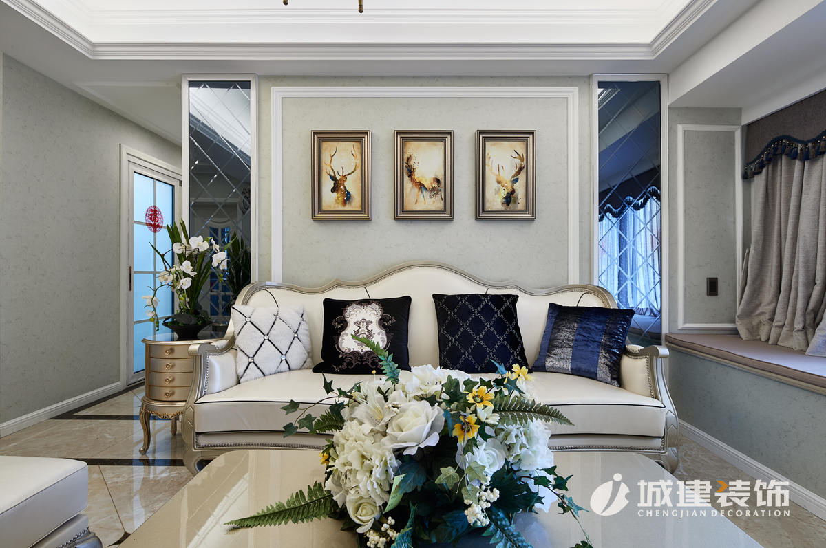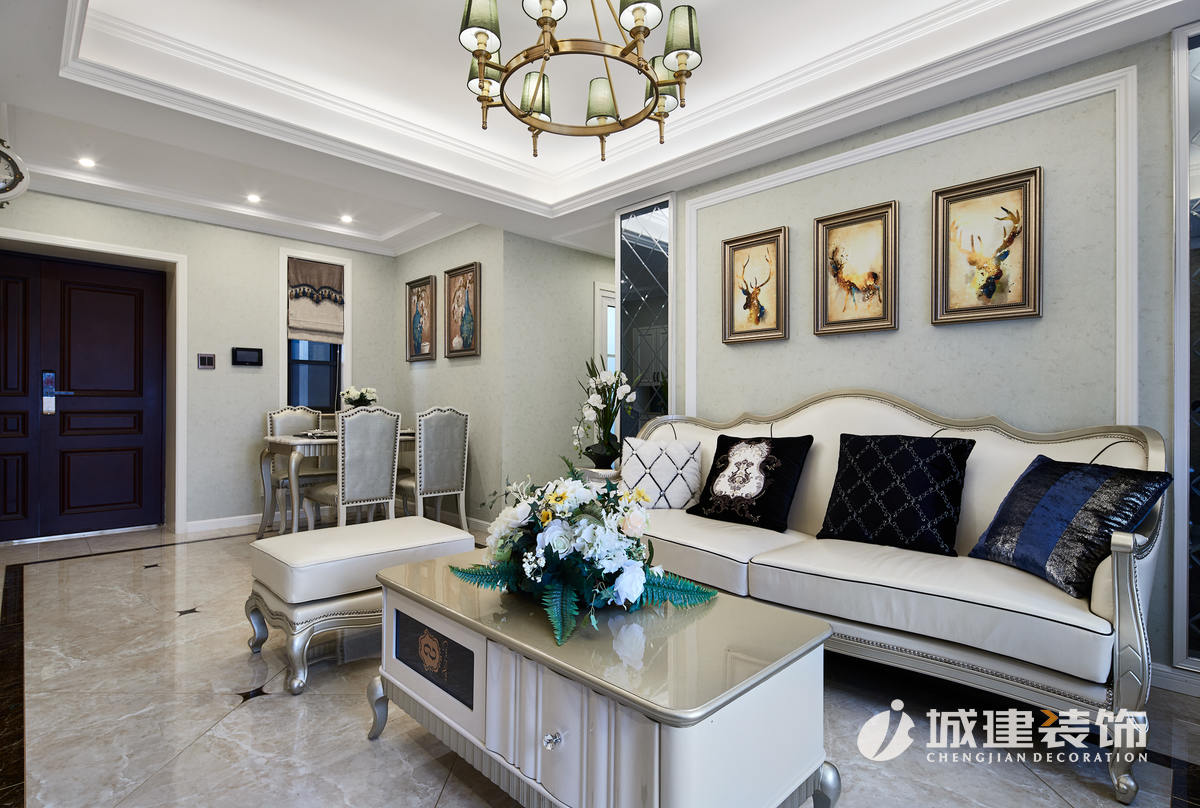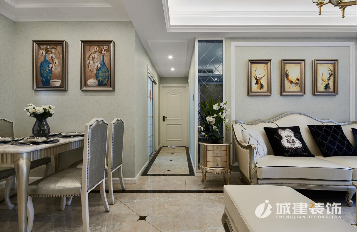 本案采用簡法風格,淡雅的色彩詮釋著一種純凈的舒適感,家具的選購與色彩及飾品的搭配,協(xié)調(diào),對稱的技巧,讓整個空間流露出高雅的質(zhì)感。