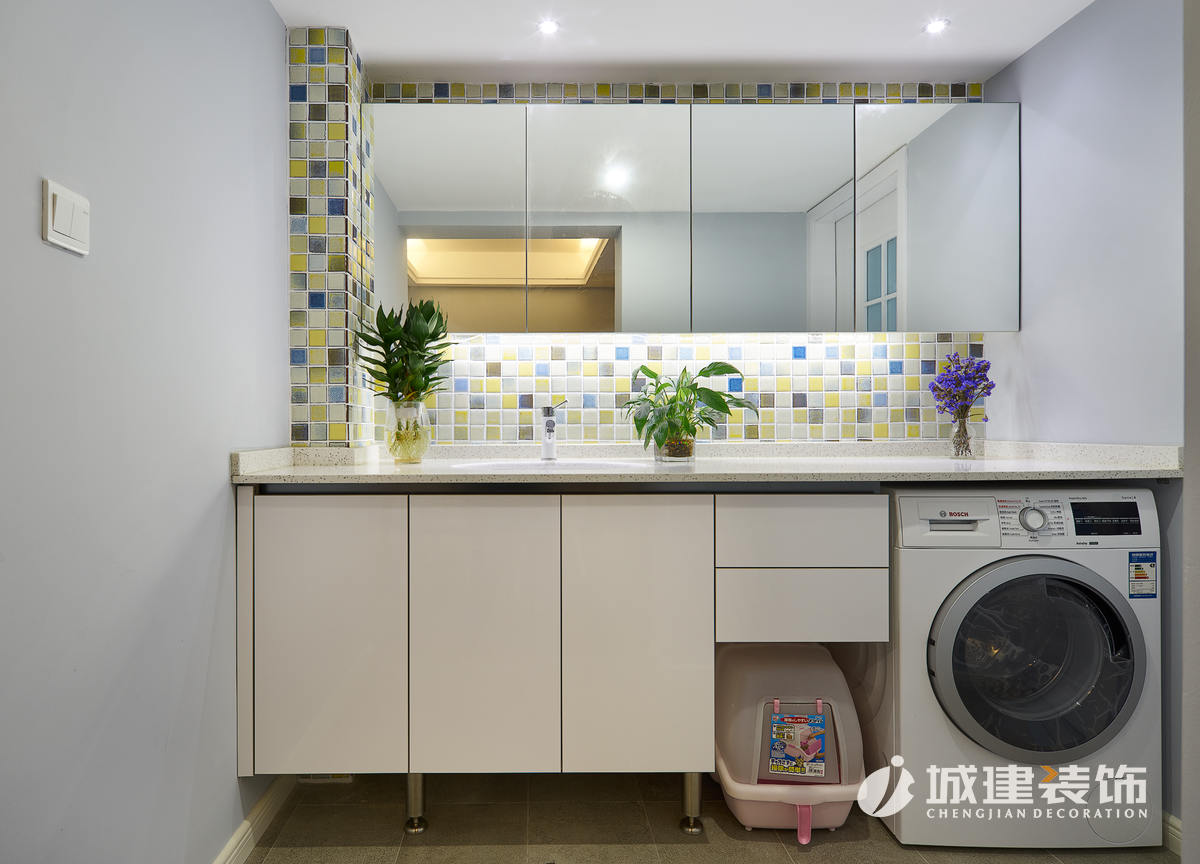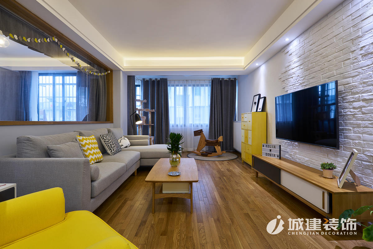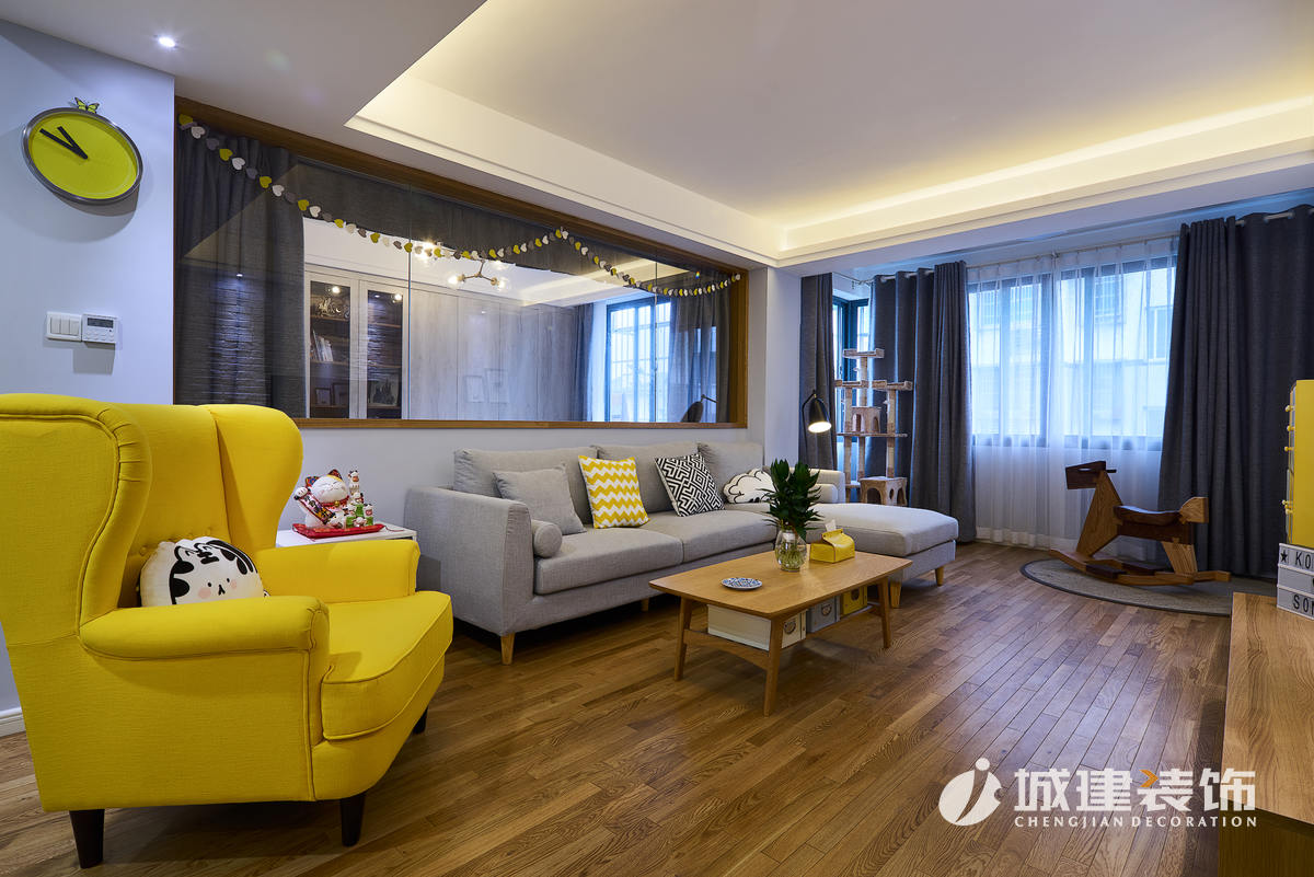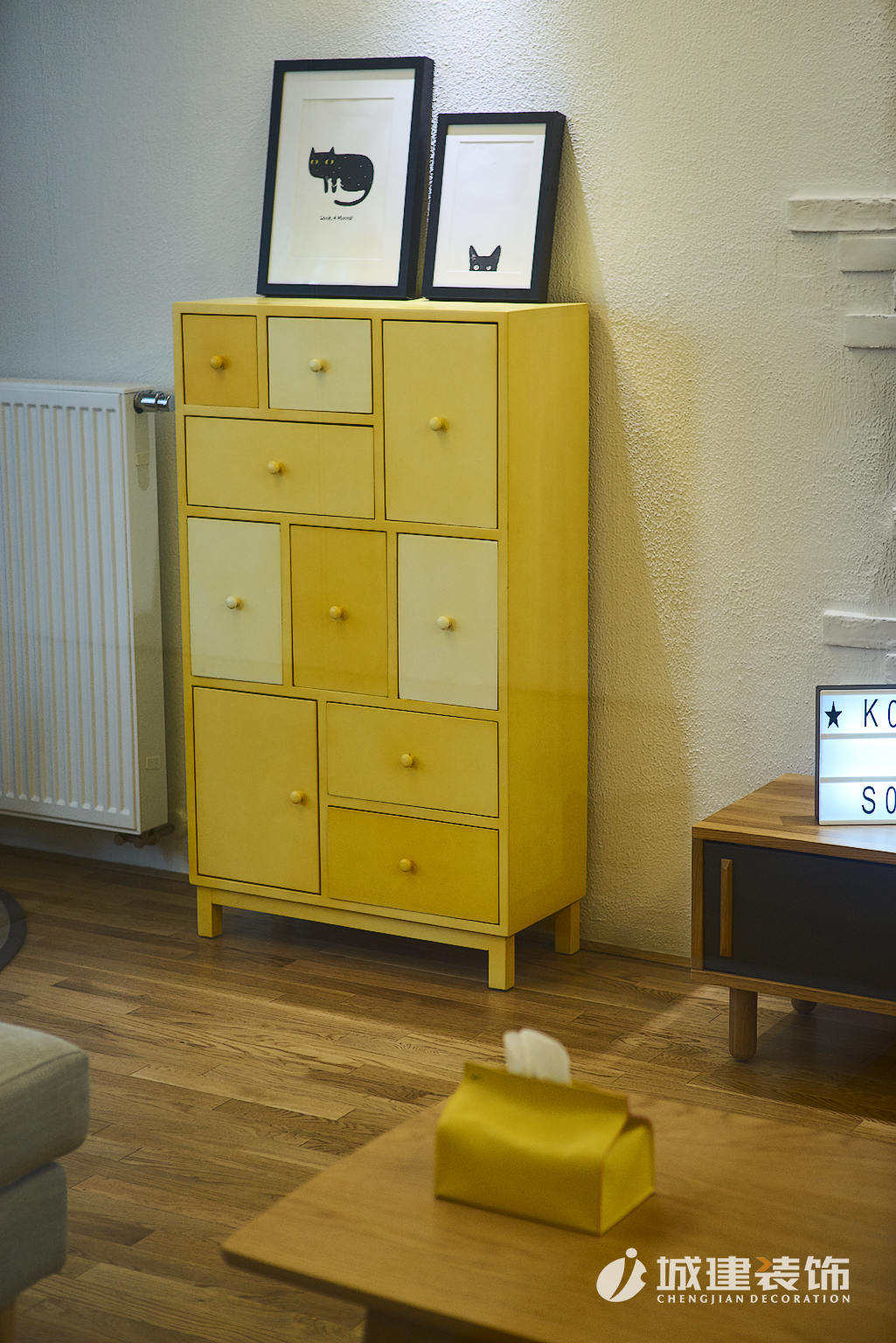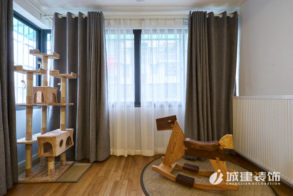 本案戶主是剛步入新婚之喜的小兩口,極愛養(yǎng)貓,所以客廳處辟出一隅作為愛貓的家;戶型結(jié)構(gòu)上在廚房區(qū)域、衛(wèi)浴區(qū)域以及書房衣櫥間都做了極大的改動。