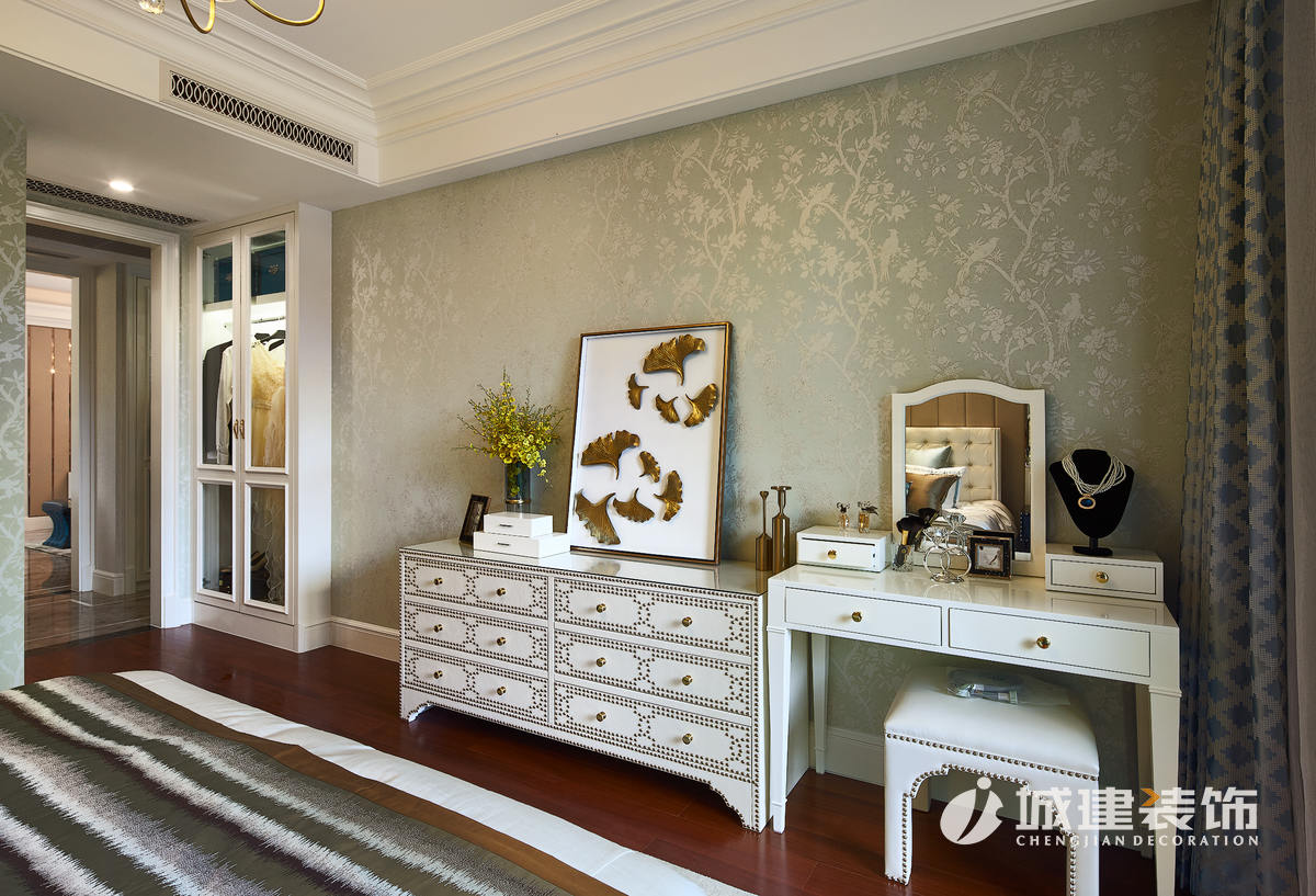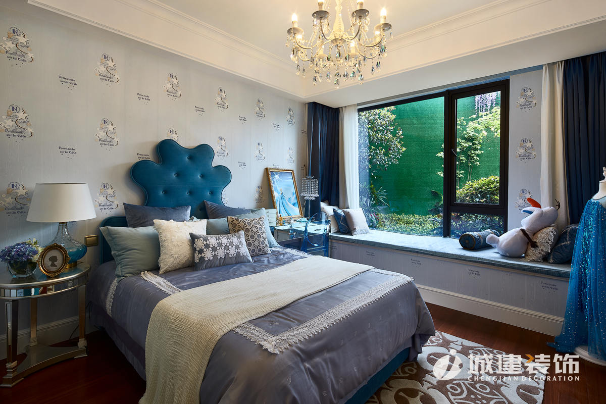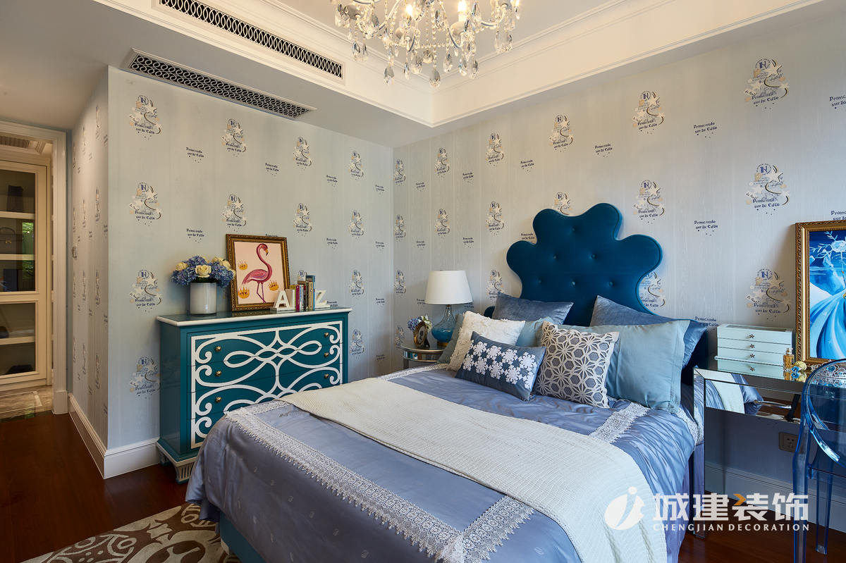 臥室的功能最是關(guān)鍵,主臥和客臥的層次分明,床品和背景的色彩分離清晰,三分裝,七分飾,不管是吊燈、壁紙,還是墻壁上的飾品、窗戶的背影,首先就營(yíng)造一種如入夢(mèng)境的感覺(jué)。
