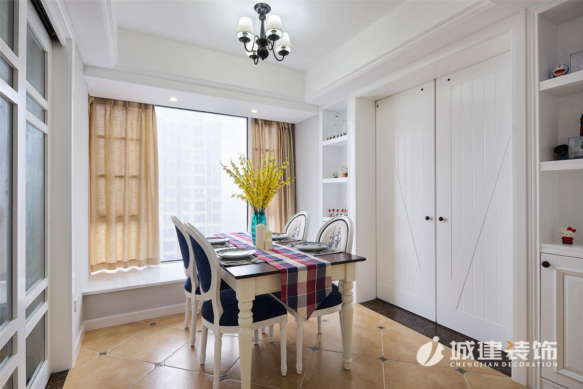 設(shè)計(jì)摒棄了傳統(tǒng)美式風(fēng)格的繁雜,整體裝修上依舊延續(xù)了美式的線條感,拱形門和壁爐的設(shè)計(jì)。布藝的沙發(fā)、挺拔的護(hù)墻板、古樸的柜椅,各種元素并不是簡單的堆砌,而是在家中的每個角落安然共處。閑來靠在飄窗上,陽光透過窗子可以肆意的灑落在身上。色彩的搭配上,在冷色系的氛圍中添加一抹亮眼的黃色,使整體氛圍顯得更加柔和。并且根據(jù)業(yè)主需求,設(shè)計(jì)“一物一空間”,讓家里每個角落都有他們所愛動漫公仔的身影,成為真正意義上的“漫·城”。