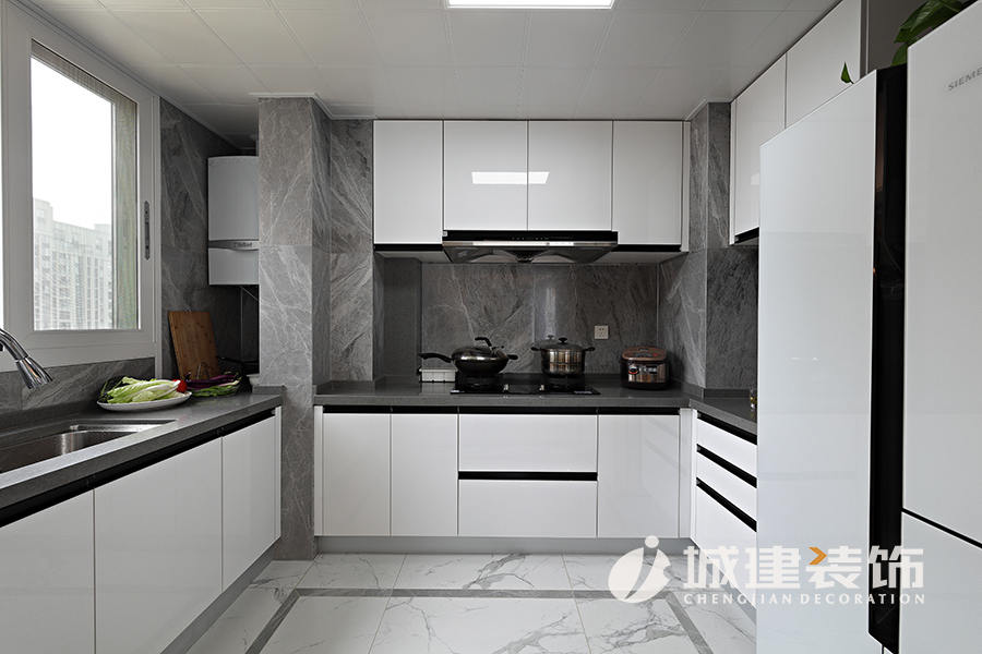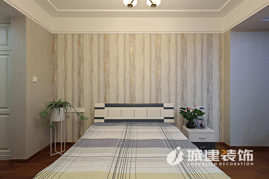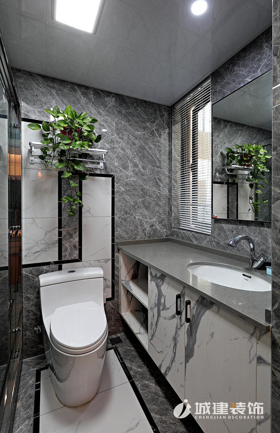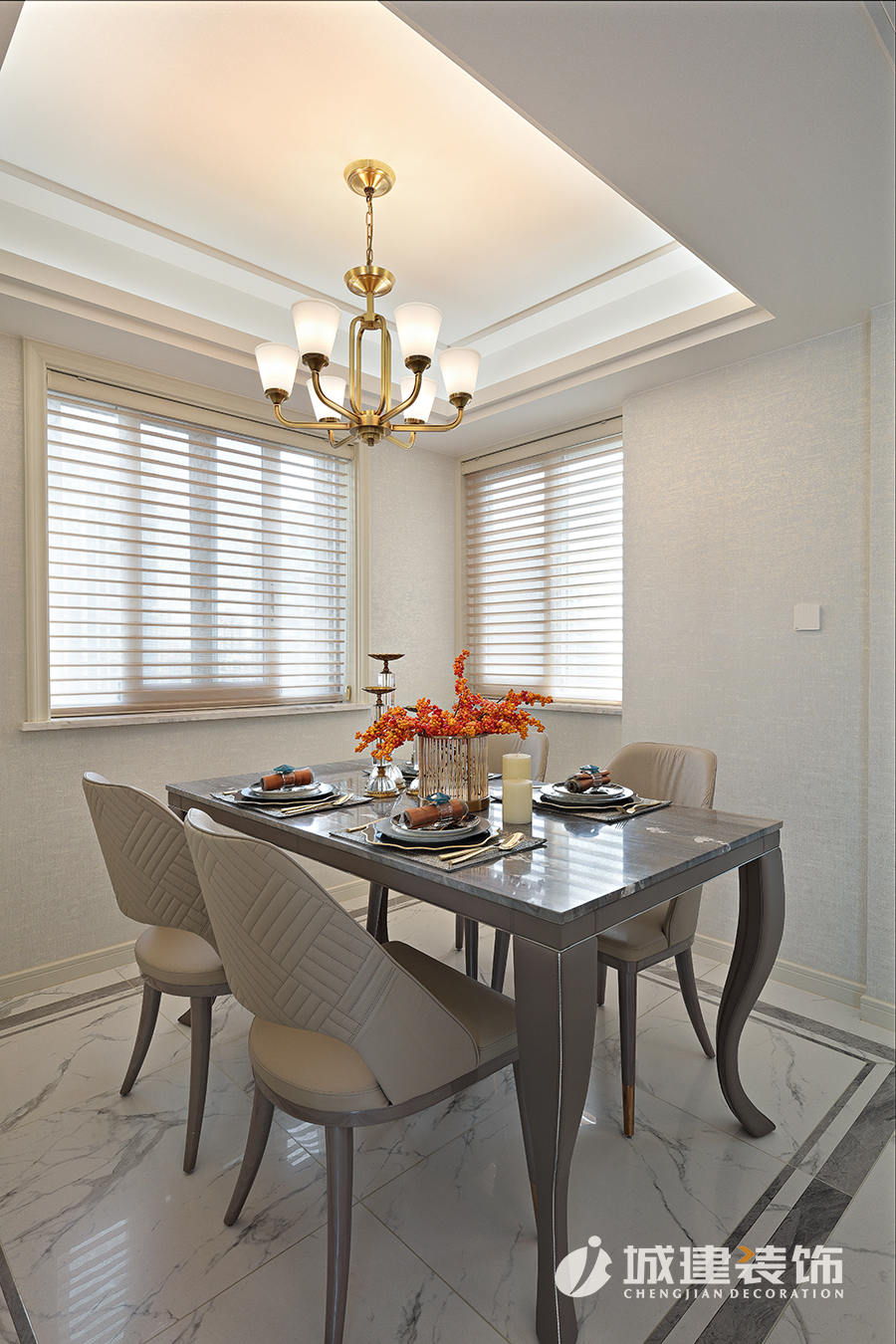 近而不浮,遠而不盡。白色為主色調(diào),營造了一個純凈的氛圍,若隱若現(xiàn)的室外景觀給人以遐想,電視背景墻山水中式元素與現(xiàn)代材質(zhì)巧妙兼容,再現(xiàn)了移步變景的精妙小品。大面積白色造型墻與灰色墻紙搭配,沉穩(wěn)氣息撲面而來,半高電視墻巧妙地利用了墻體的空間,使空間看上去更為寬敞,茶幾黑色的大理石材磚讓這個空間顯得更加沉穩(wěn)。黑色大理石臺面和周圍燈具金色金屬質(zhì)感結(jié)合完美的和電視墻完美呼應(yīng),賦予空間溫暖的質(zhì)感。