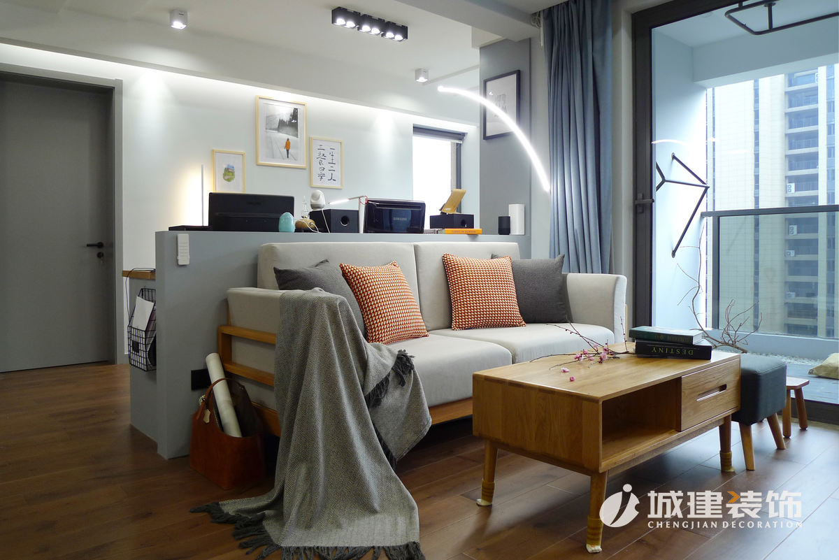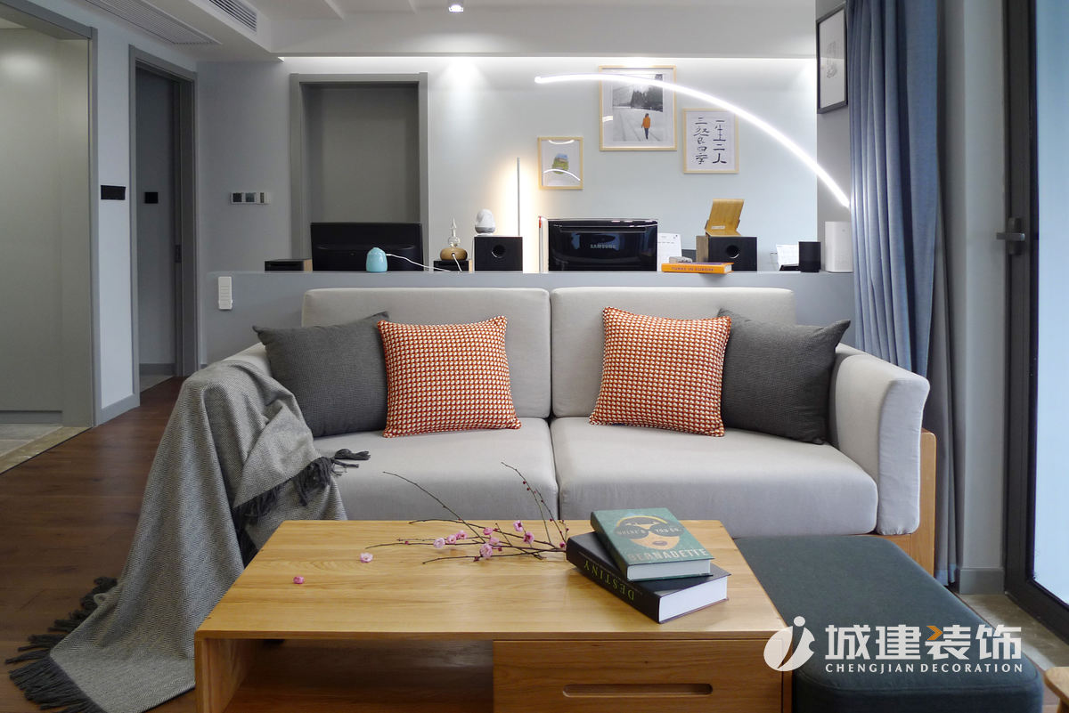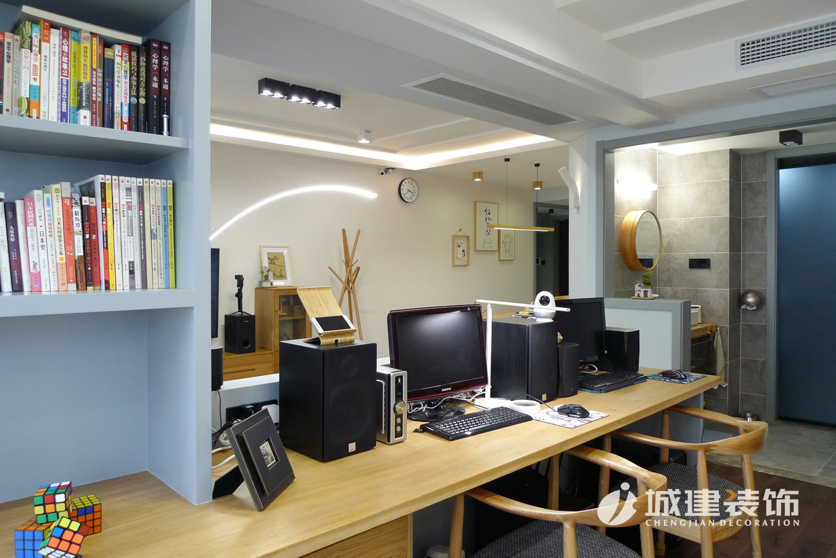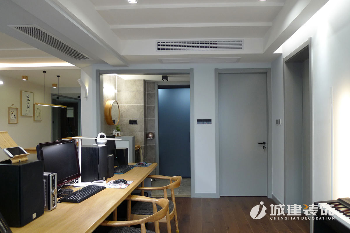 客戶是兩夫妻長期居住的房子,女主人是老師,愛好喜歡做工藝品,所以在朝南的房間單獨(dú)設(shè)計了一個工藝品的工作室,這個房型是現(xiàn)在最多的小三房戶型,我把過道換了位置,多了干區(qū)之余,工作室的空間大了,并且主臥放了1800的床的同時還有一個U字形的走入式衣柜,主衛(wèi)的空間也大了