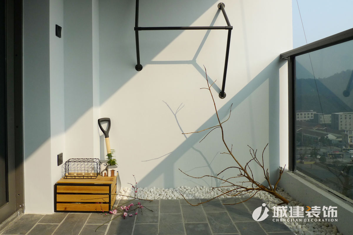 陽臺設(shè)計了青石板鋪設(shè)以及周圍用鵝卵石點(diǎn)綴,營造日式景觀的感覺,兩夫妻非常小資,很懂得生活,在陽臺設(shè)計了手工水景和種花草的區(qū)域,邊界以曲線的形式圍合