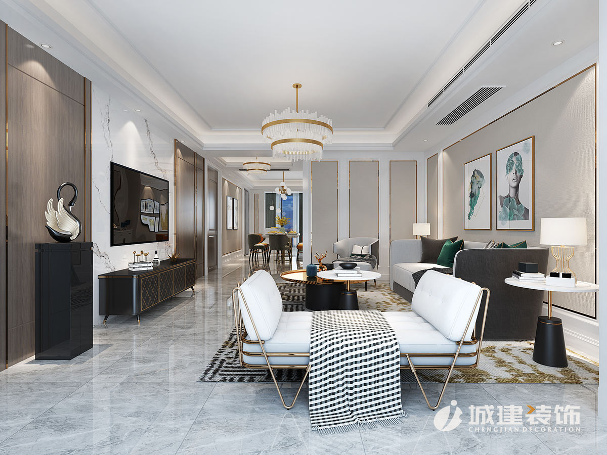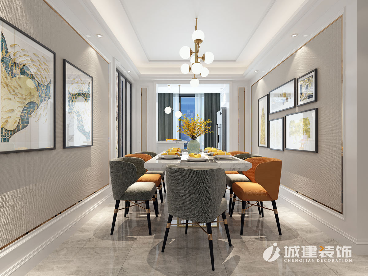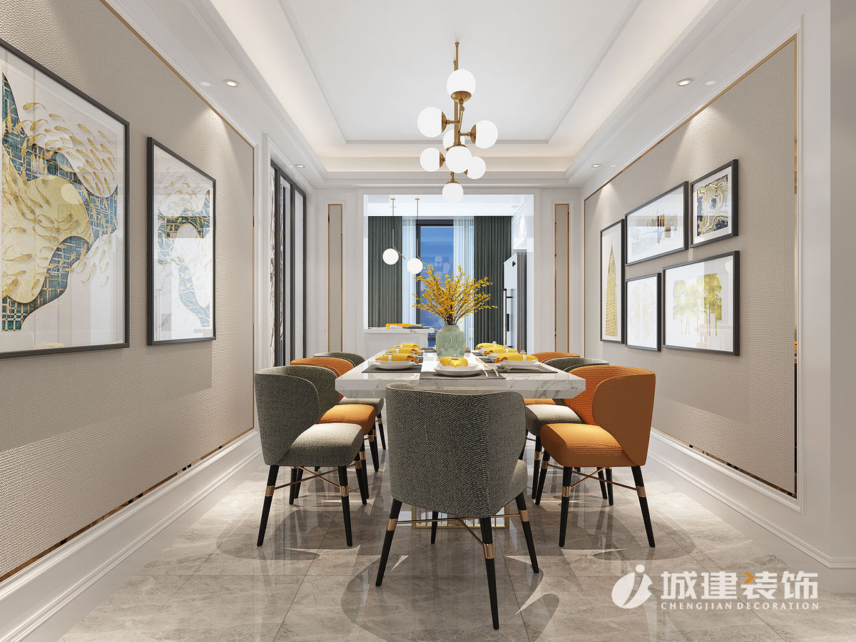 設計亮點:每一個臥室的空間都變大了,客衛(wèi)進行了干濕分離。客廳客廳整體色調(diào)以暖色調(diào)為主,墻面固定家具以白色調(diào)為主,家具以美國櫻桃木作為主色調(diào)來承托空間的穩(wěn)定性,并在后期裝飾中融入主母綠和橘黃色調(diào)為點綴色,來營造一種悠閑舒適的生活環(huán)境。暖灰的運用,增添了時尚感,不僅在電視背景墻上的運用達到了此效果,在布藝沙發(fā)的選擇上也明顯的彰顯了時尚的品味。