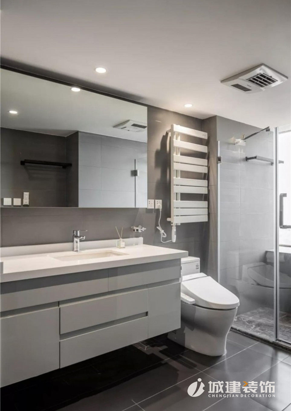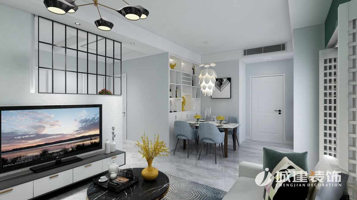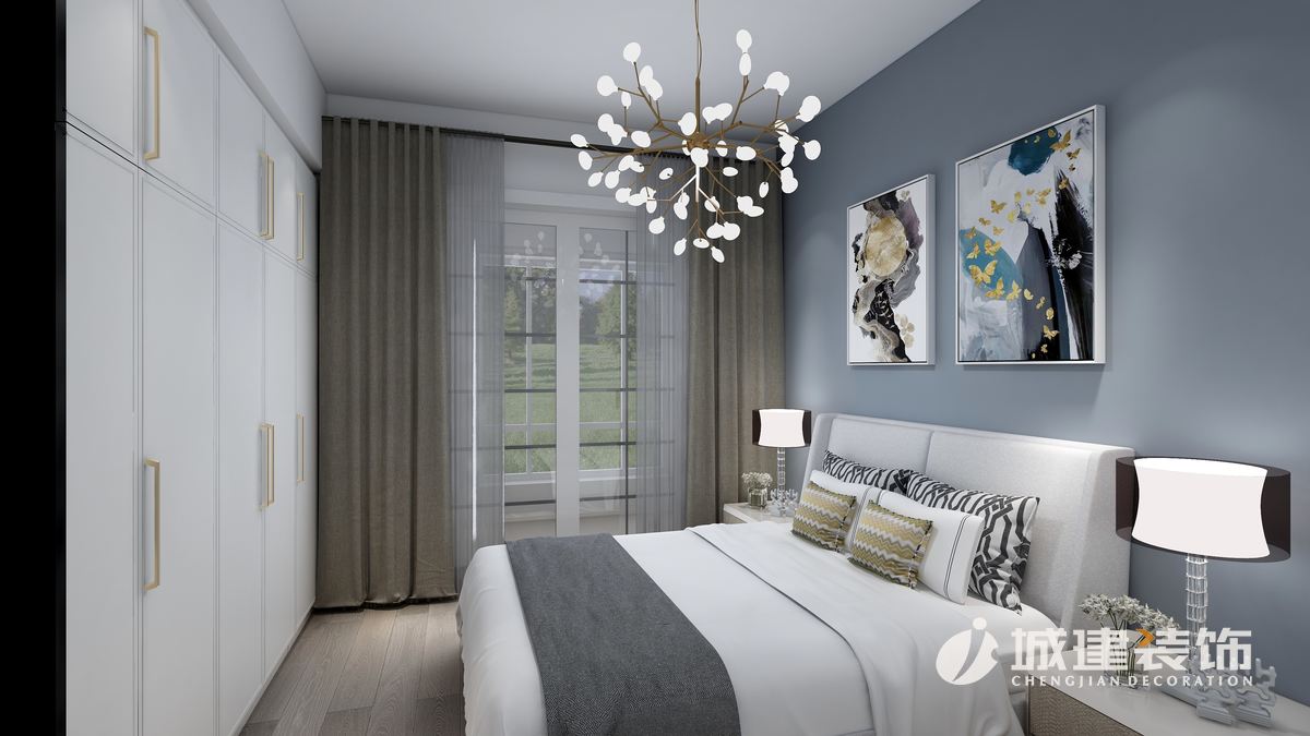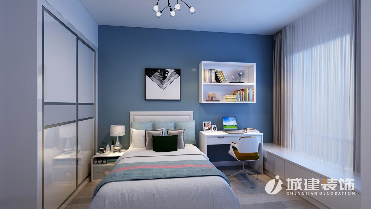 客廳電視背景運用矮墻和玻璃邊框隔斷的設(shè)計,使得干區(qū)部分采光大大的增加,運用跳色乳膠漆使整個空間時尚感,臥室也采用床頭背景運用深色乳膠漆。