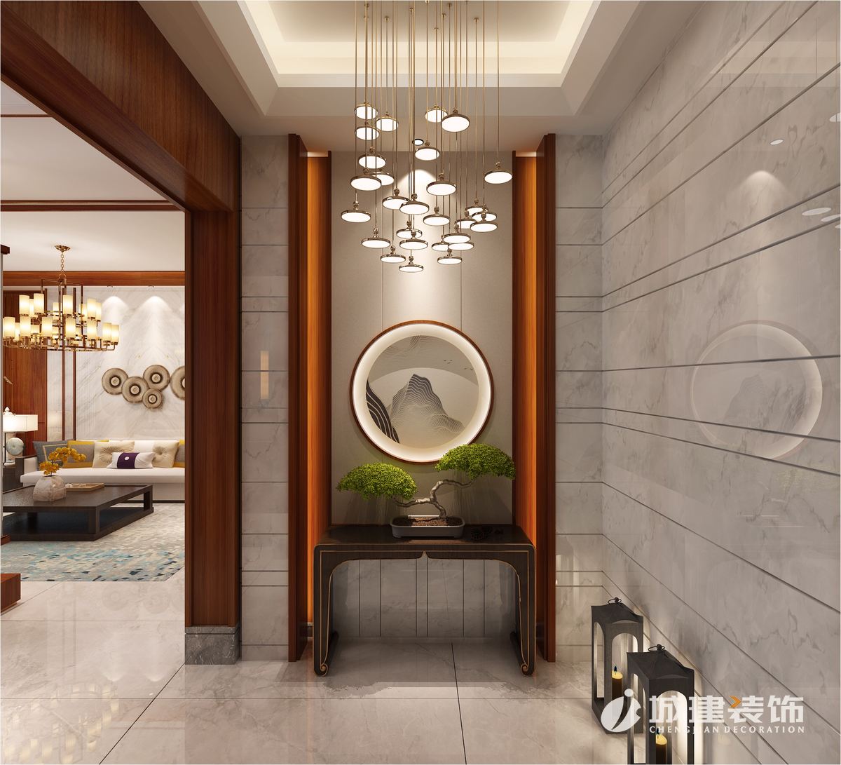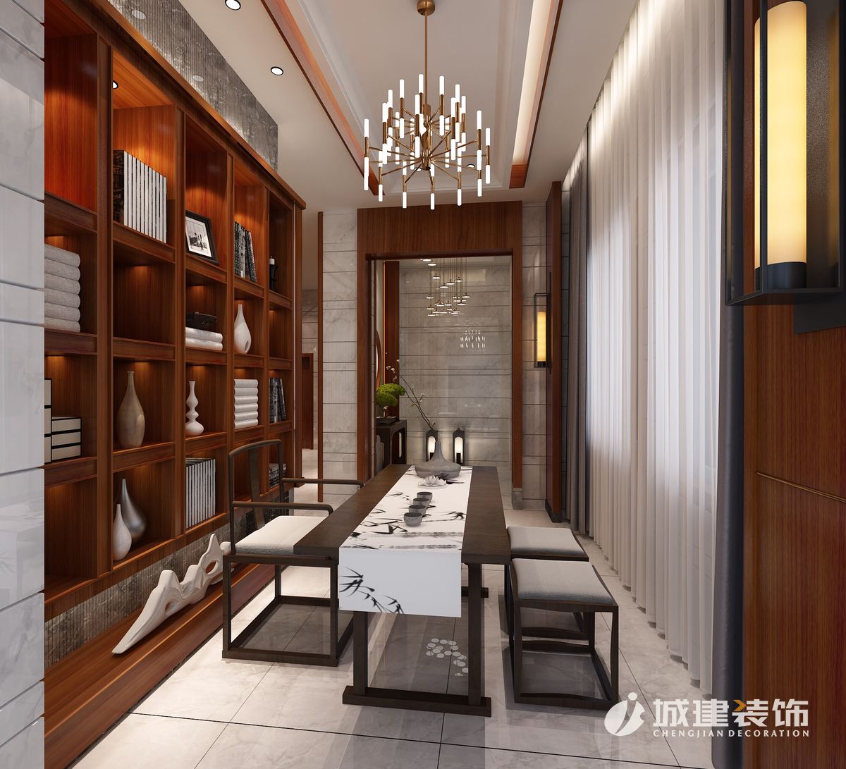“每一件中式家具就像一首經典老歌,在每一個流動的音符中都蘊涵著深深的韻味,只有細細品味,才能感受其獨特的魅力。此案設在設計中著重打造具有中國傳統(tǒng)文化色彩的高品味雅居。室內的每一件物品背后都仿佛蘊藏著中式文化的安靜與樸素,并體現(xiàn)著時空雕刻的痕跡。完美的品質感形成對居住者人性化關懷,讓居家生活充滿感動。