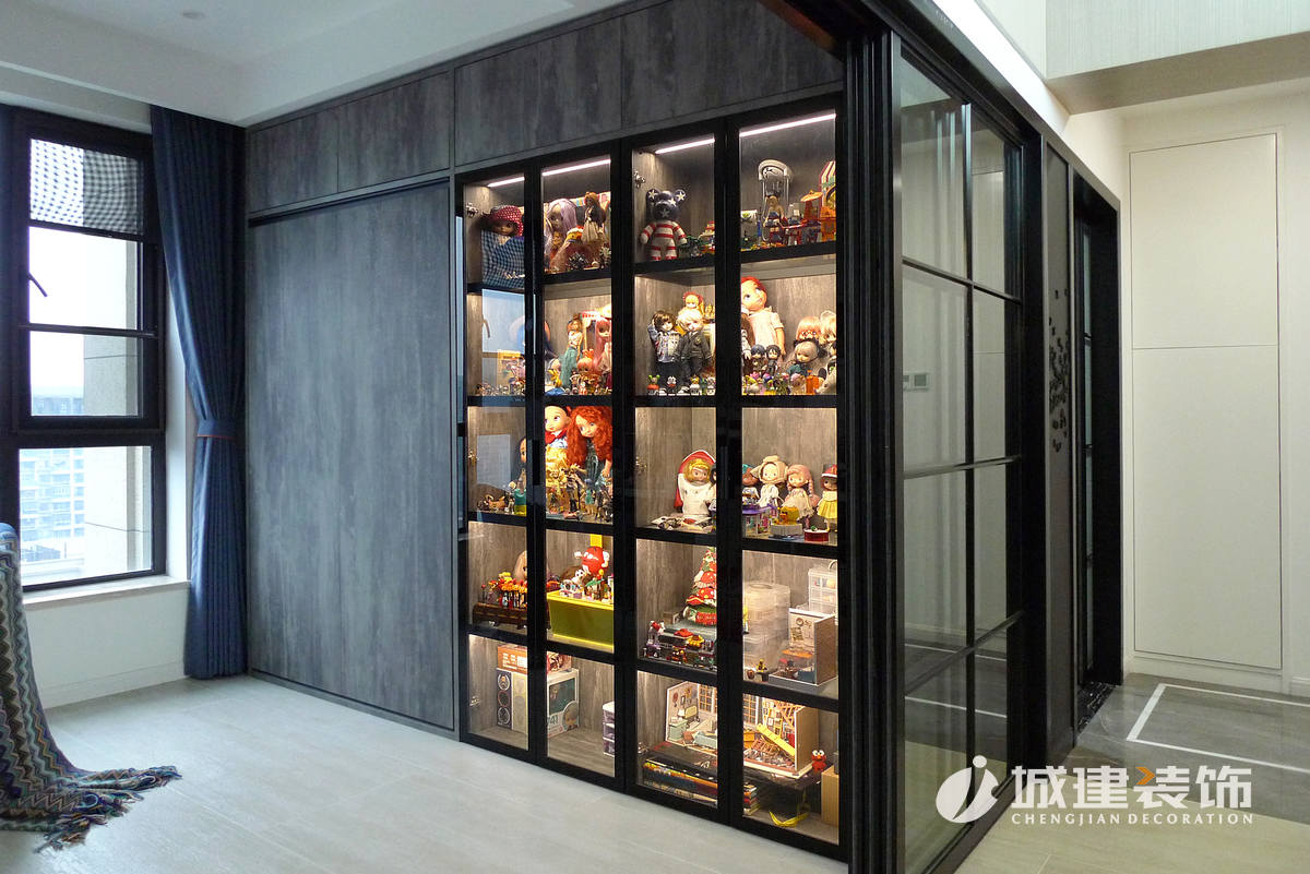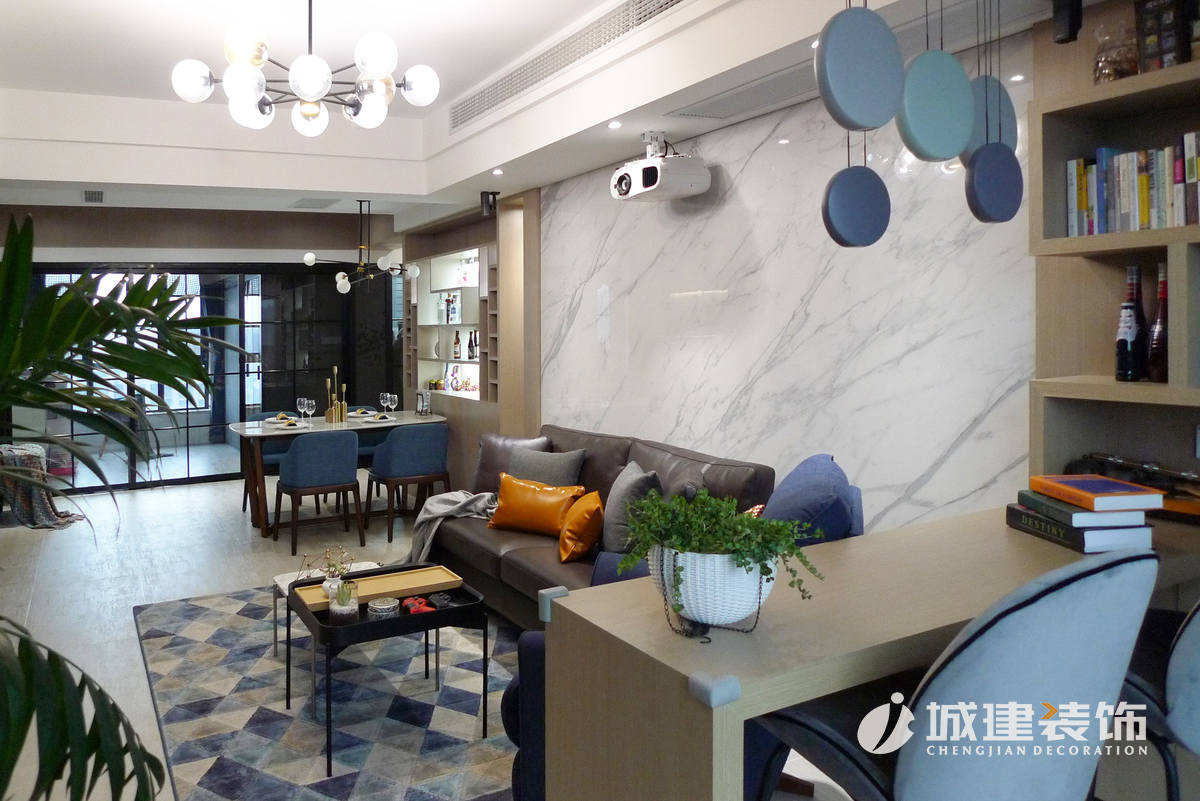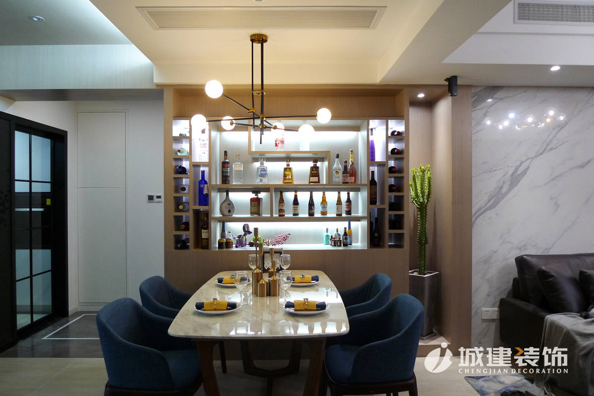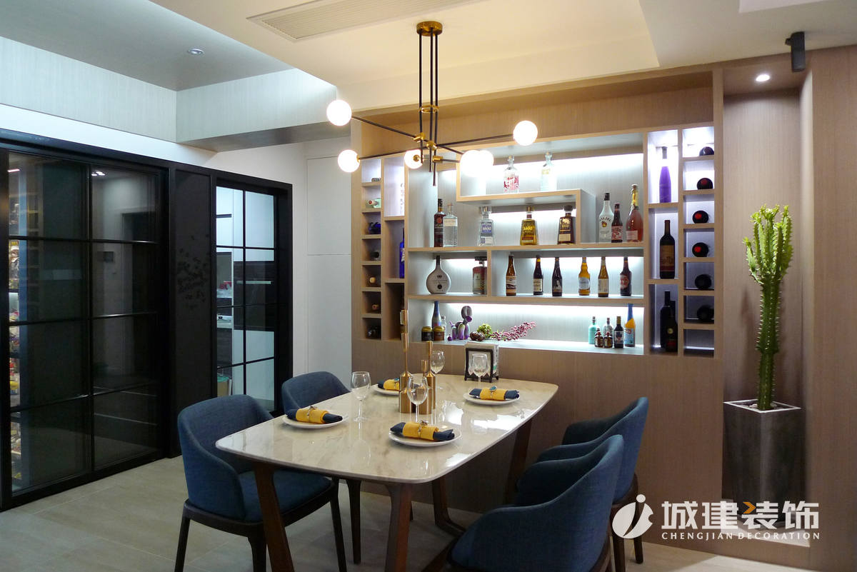 方案改造之后,客餐廳和吧臺的空間就比較舒適了,整個動線和通風(fēng)采光也發(fā)揮到了極致,多功能書房和廚房的移門設(shè)計在一個面,連貫性更強,移門后面的墻體設(shè)計是一面磁性黑板漆,因為客戶的女兒很喜歡畫畫