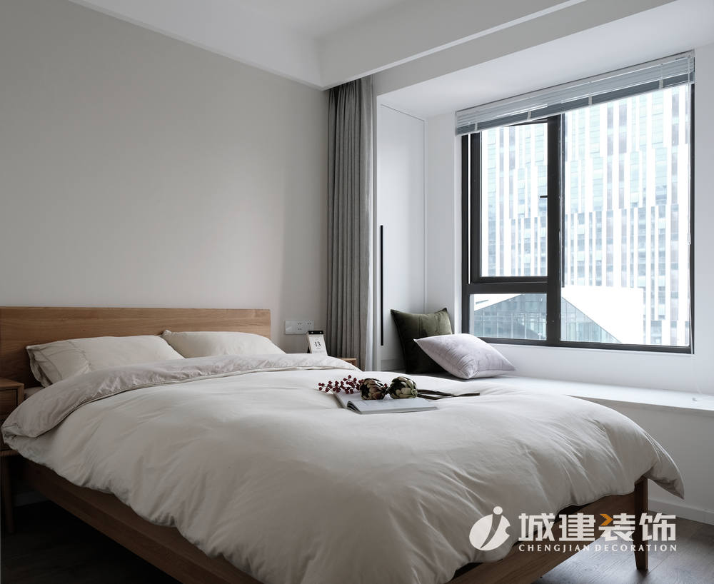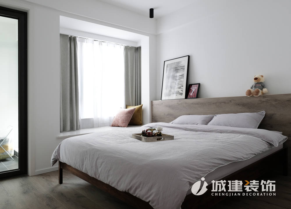 入門往左走就是比較私密的空間——臥室。主臥依然是簡約北歐格調(diào),定制的木制床靠背與地板合二為一,讓這個(gè)空間更加整體;父母偶爾會過來居住,所以次臥背景墻挑選了淺棕灰色,溫馨靜謐。