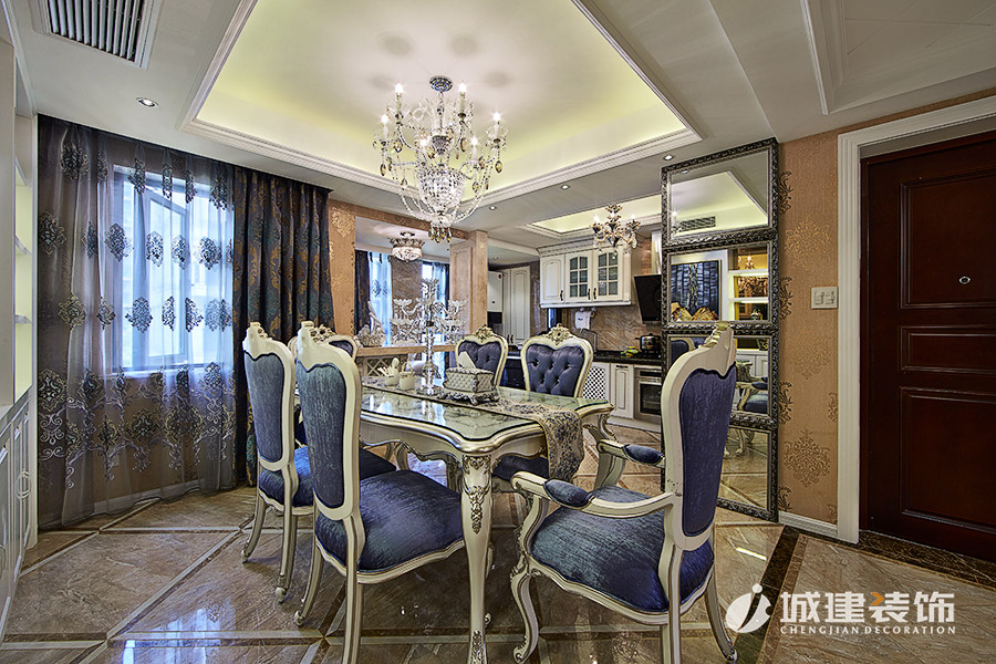 本案是一個三口之家,業(yè)主喜歡歐式的優(yōu)雅與奢華,因此采用歐式裝修風(fēng)格,通過水晶吊燈、壁燈、以及擺放的小飾品來營造出優(yōu)雅的氛圍,地磚、背景墻、吊頂?shù)炔糠謩t能表現(xiàn)出歐式的奢華。