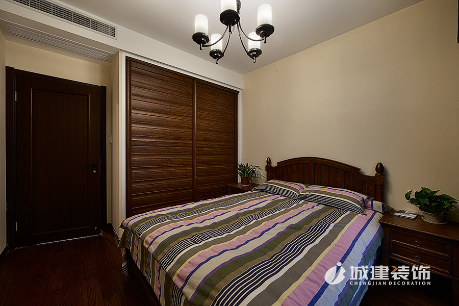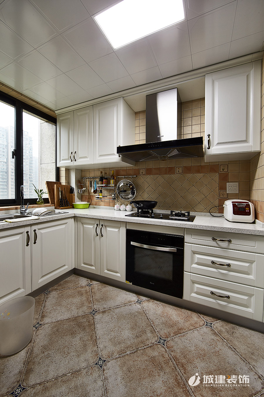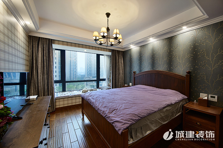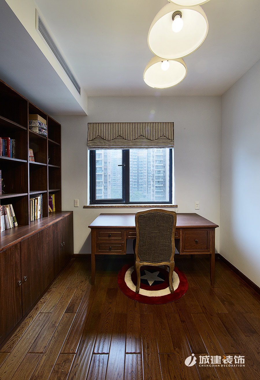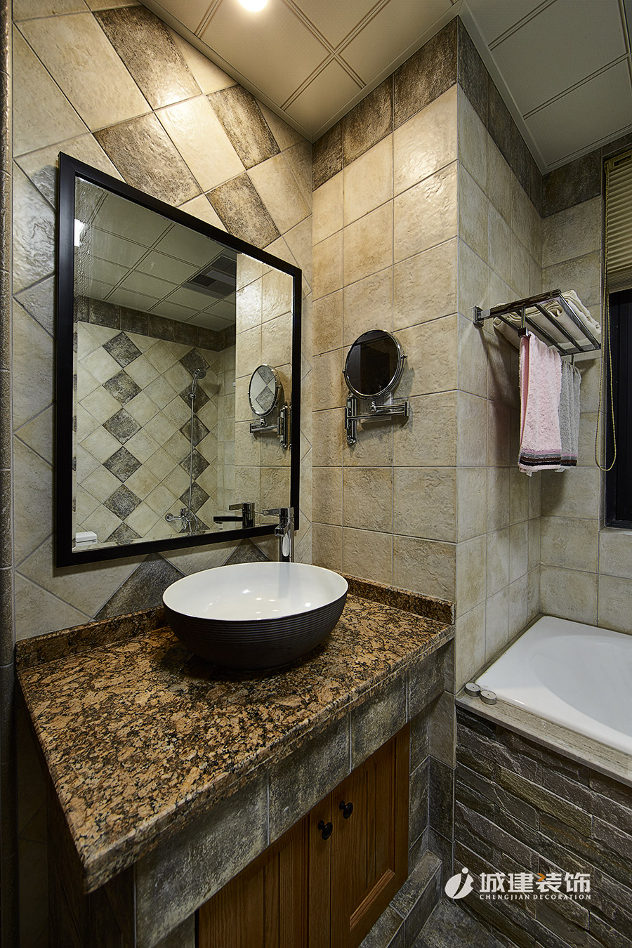 本案采用溫馨小美風,無論是客廳處的或皮質(zhì)或布藝的沙發(fā),還是做舊造型的沙發(fā)柜,電視背景墻和玄關處酒柜吧臺的石材裝飾,時尚個性燈具,鐵藝木質(zhì)結(jié)合的吧臺椅,無不體現(xiàn)浪漫的美式情懷,整體風格也達到極致完美的統(tǒng)一融合。