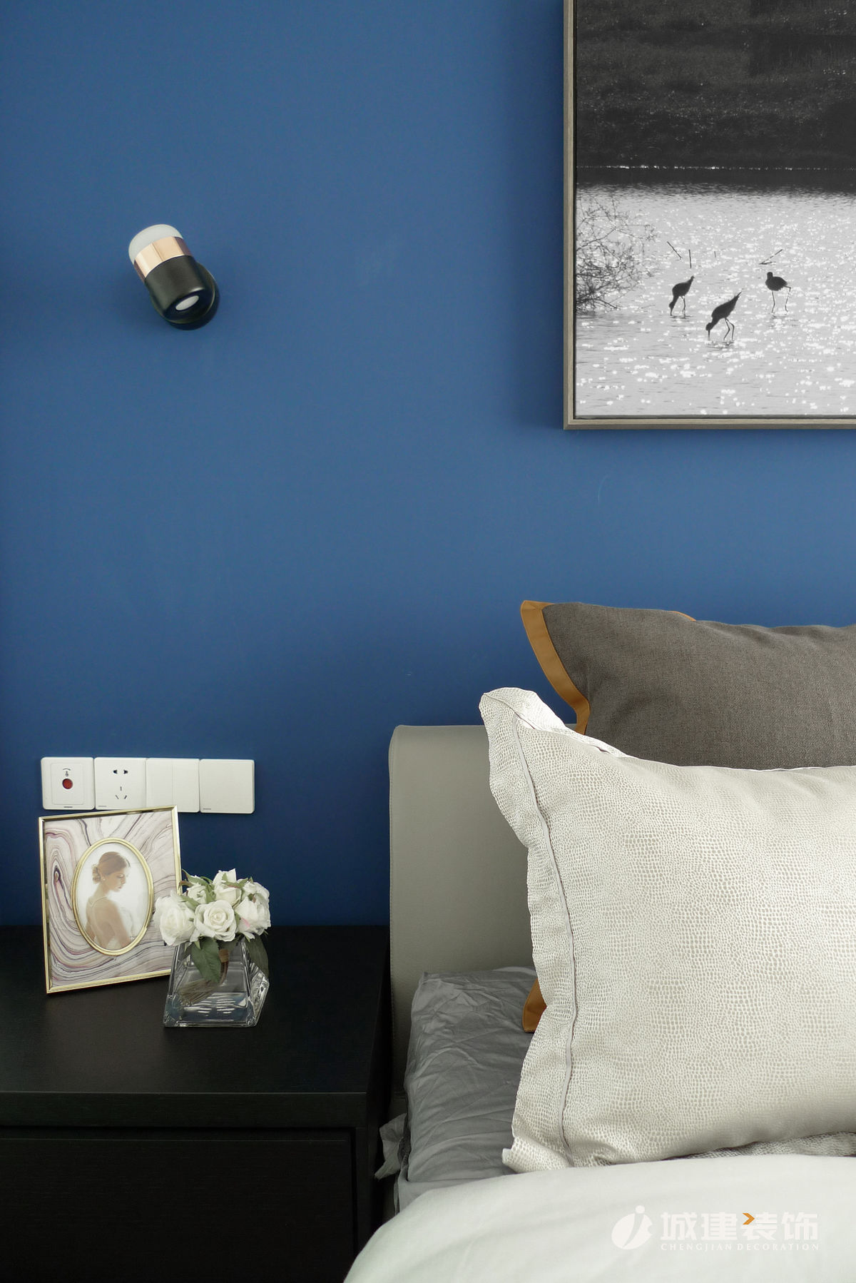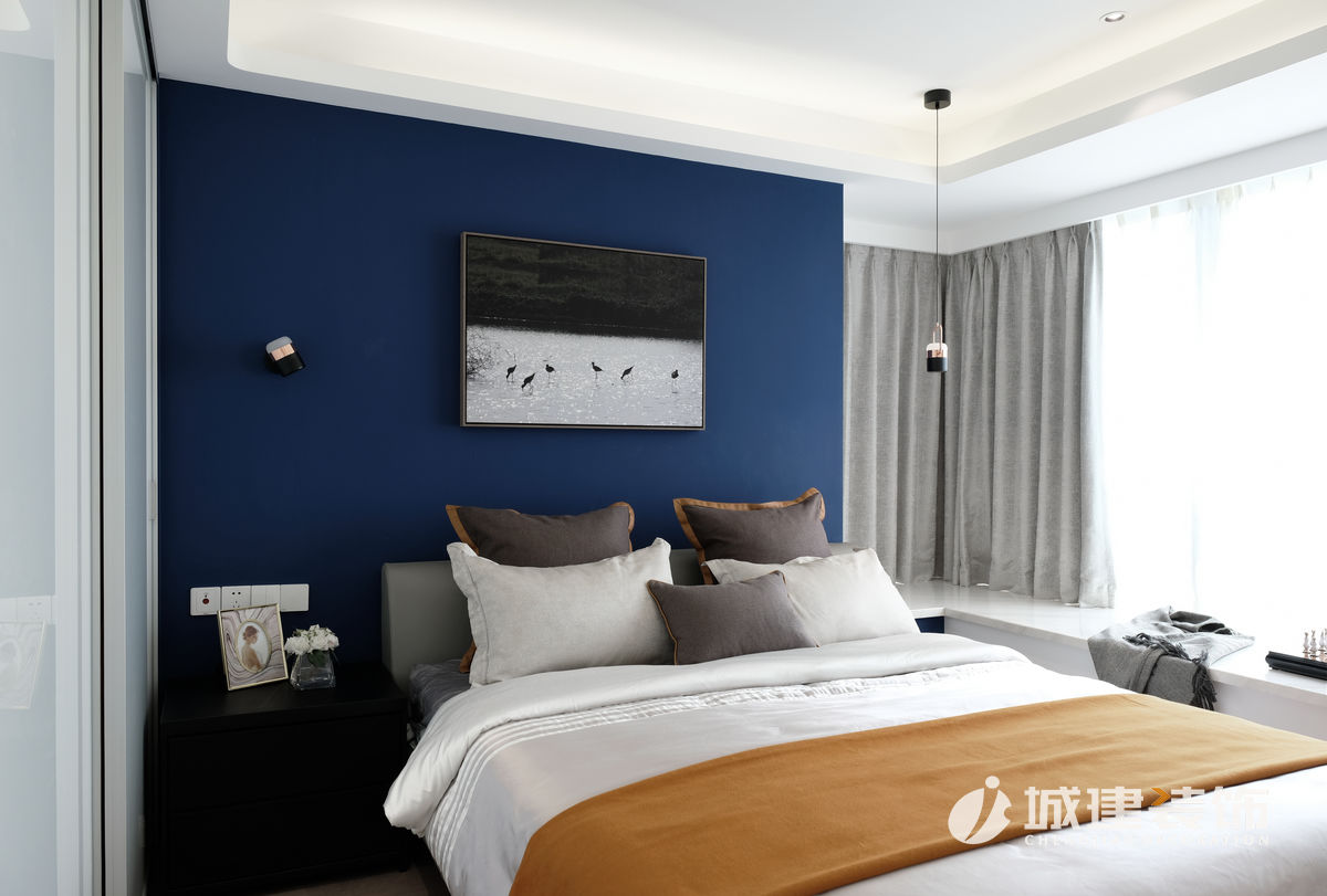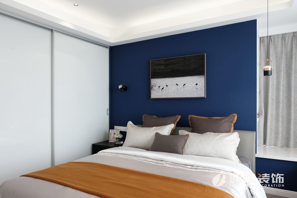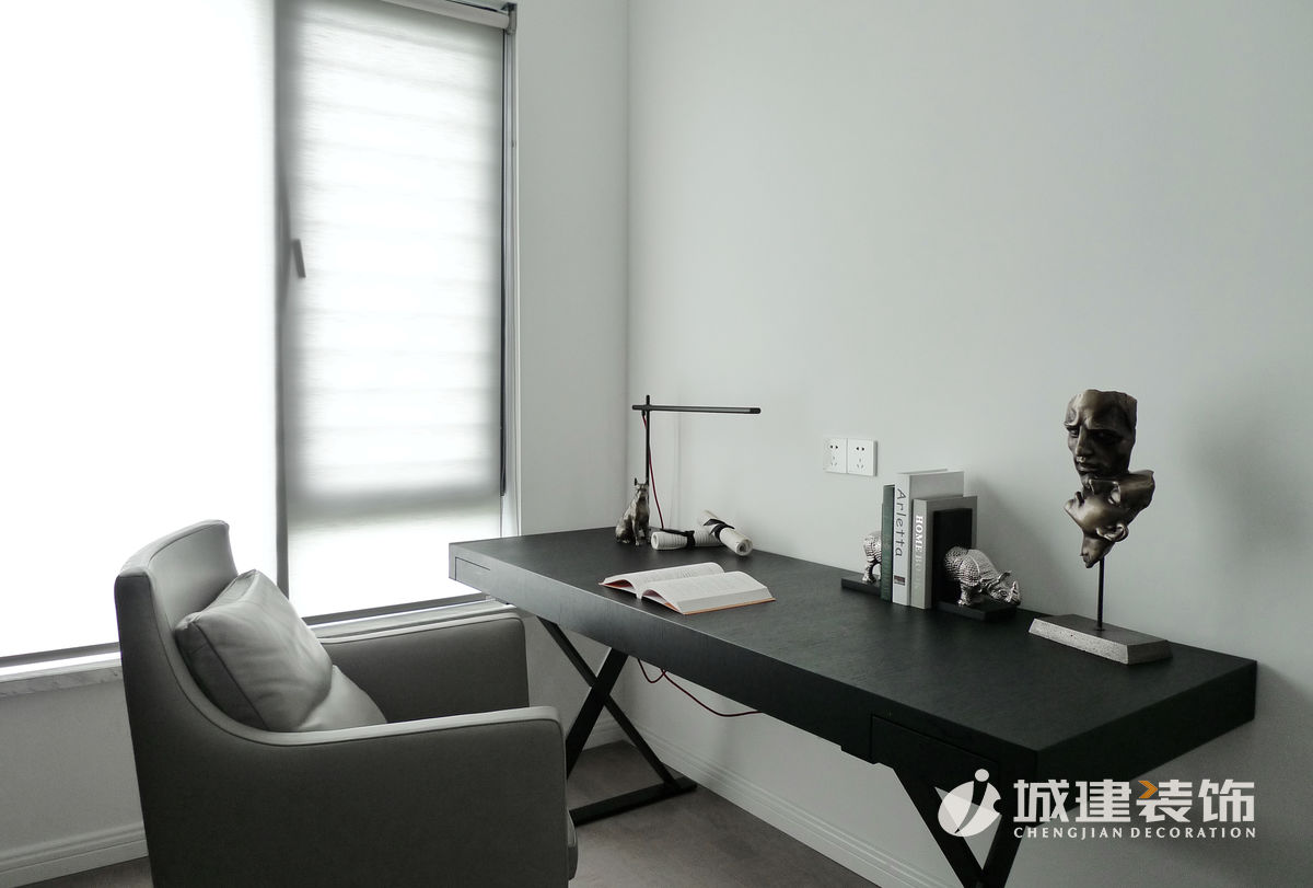 書房和次臥室的空間考慮了一個套房的設計,考慮家庭實際情況,既滿足了書房的隱私性又能保證客餐廳的整體效果。另外原來戶型結構有兩個陽臺,在保證公共陽臺作為生活陽臺的情況下!盡可能大的把兒童房空間做大,讓兒童有個好的活動空間。