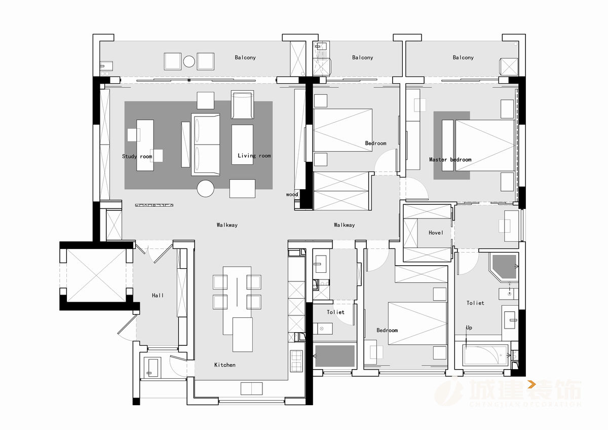 港式現(xiàn)代設(shè)計(jì)追求的是空間的實(shí)用性和靈活性。居室空間是根據(jù)相互間的功能關(guān)系組合而成的,而且功能空間相互滲透,空間的利用率達(dá)到最高??臻g組織不再是以房間組合為主,空間的劃分也不再局限于硬質(zhì)墻體,而是更注重會(huì)客、餐飲、學(xué)習(xí)、睡眠等功能空間的邏輯關(guān)系。通過(guò)家具、吊頂、地面材料、陳列品甚至光線(xiàn)的變化來(lái)表達(dá)不同功能空間的劃分,而且這種劃分又隨著不同的時(shí)間段表現(xiàn)出靈活性、兼容性和流動(dòng)性。