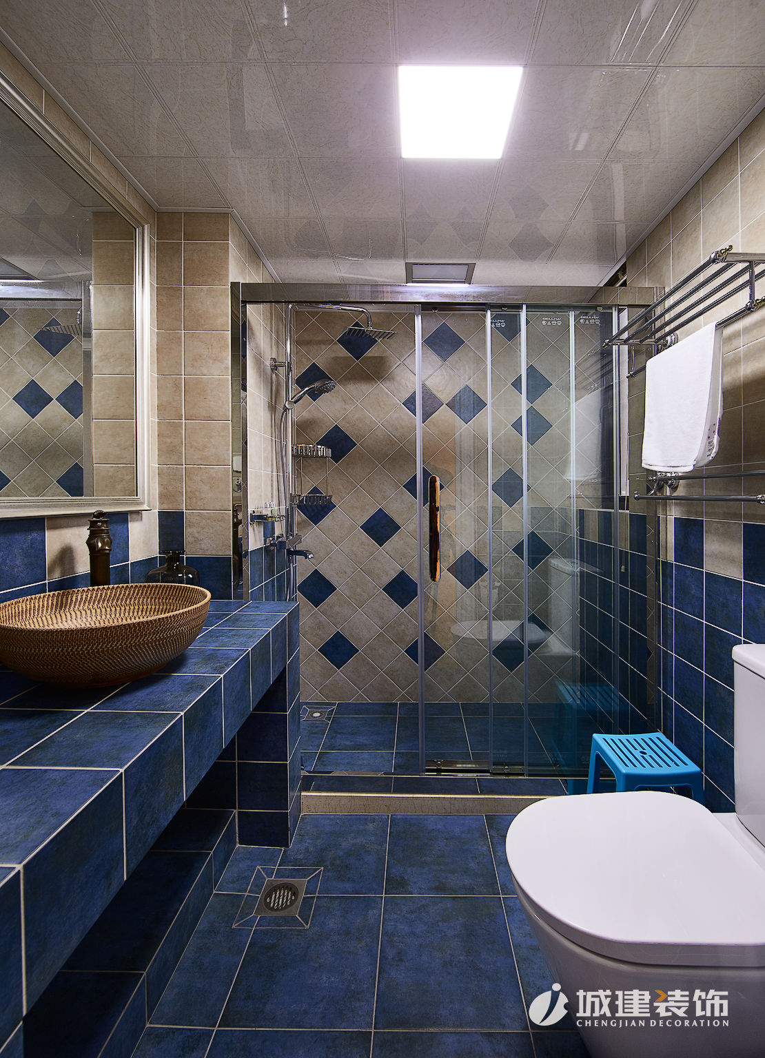 原戶型客廳與餐廳相通,空間很大,入門屋內(nèi)的情況一目了然,隱私性不夠,所以設(shè)計師利用客餐廳之間的過道設(shè)計了儲藏室,亦是一道玄關(guān),將空間合理的區(qū)分之后,增強(qiáng)了隱私性,加大了儲藏空間。