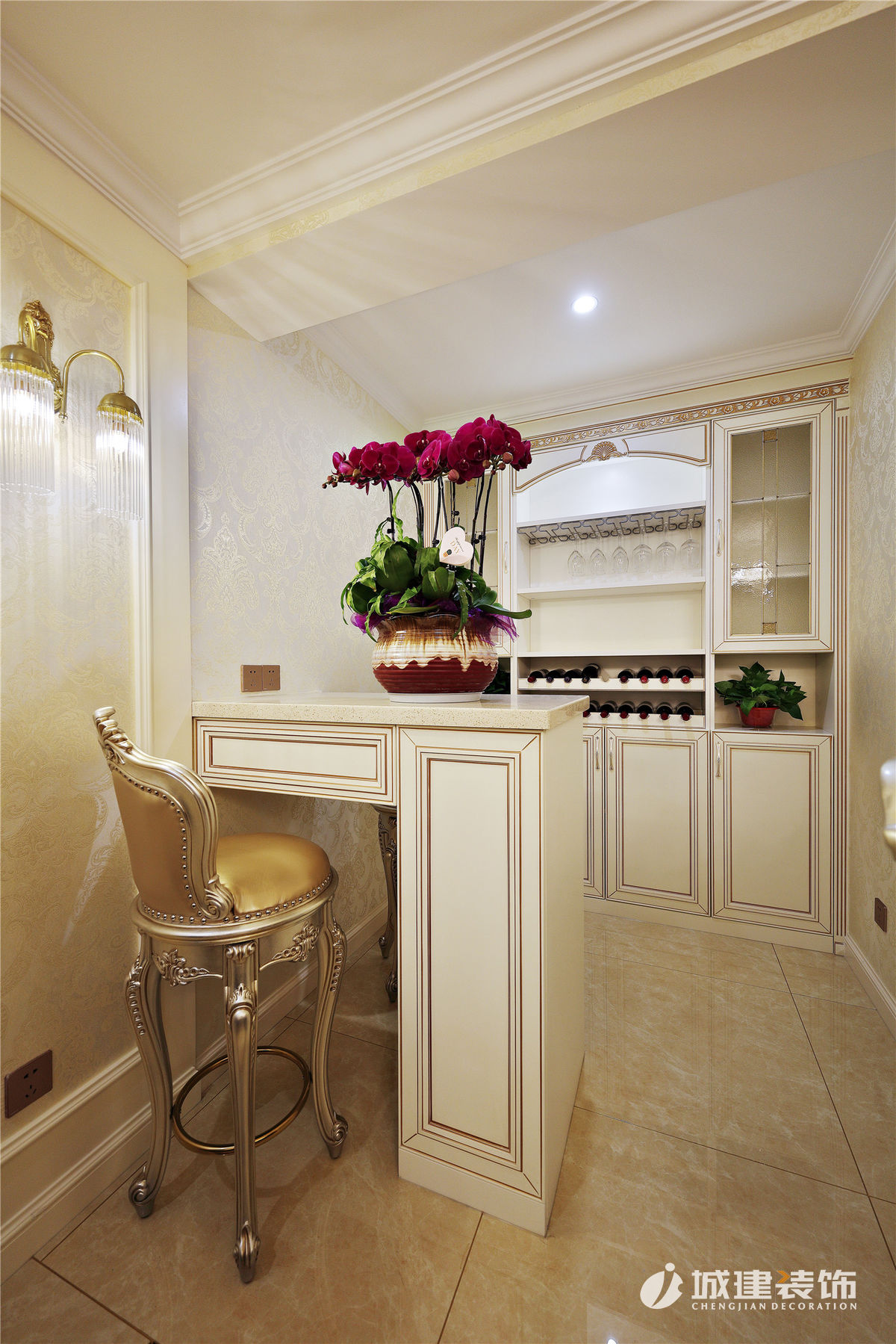 由于男主人吸煙比較多也非常好客,所以在客餐廳的區(qū)域分布上增加了吧臺,平時可以在這片區(qū)域喝喝小酒小酣一下或是朋友來一起共飲聊天暢談;在餐廳右邊設計了道移門,平??梢钥恐鴫γ孀鰝€裝飾,有朋友來的時候可以打開來形成一個獨立的區(qū)域,煙味也不會擴散到客廳這邊來。