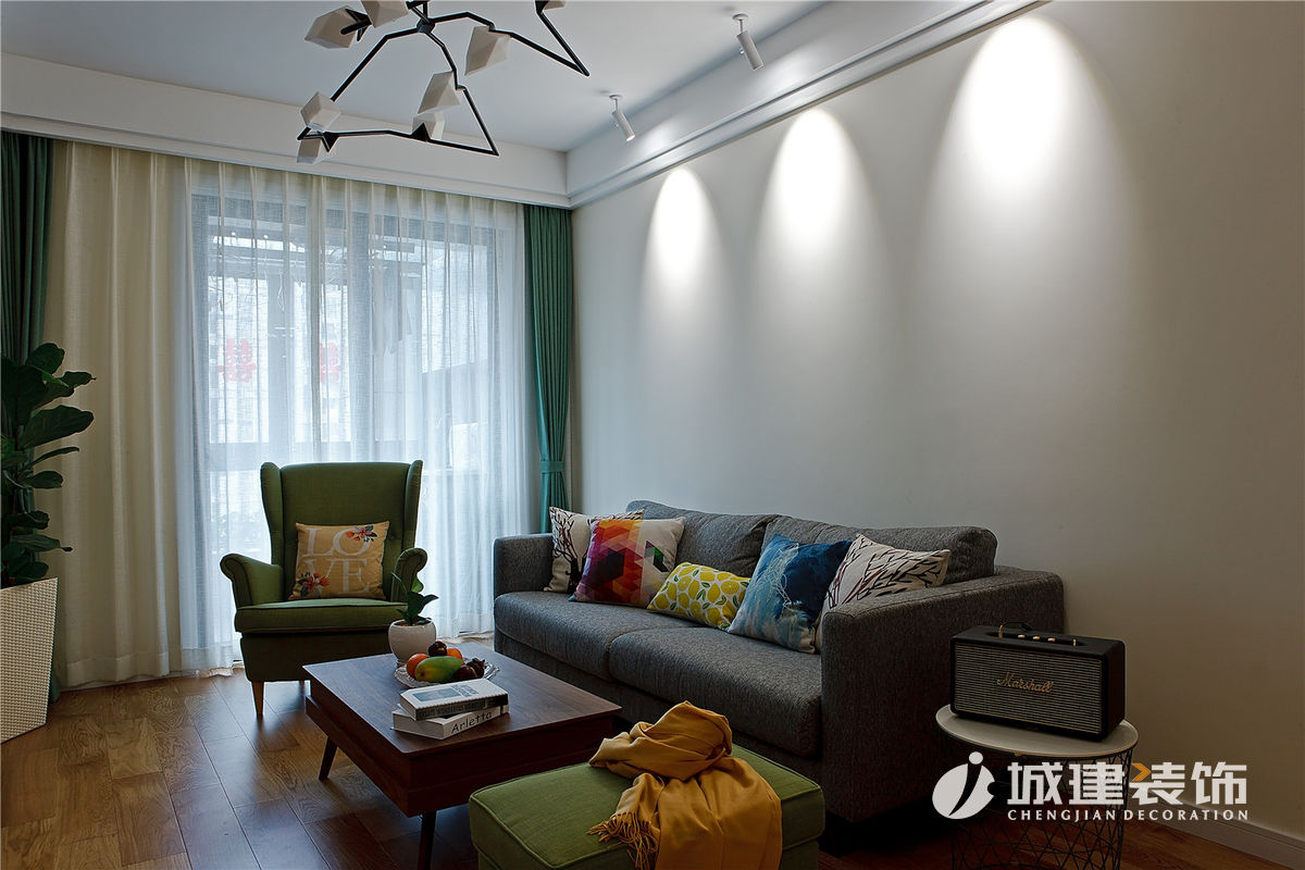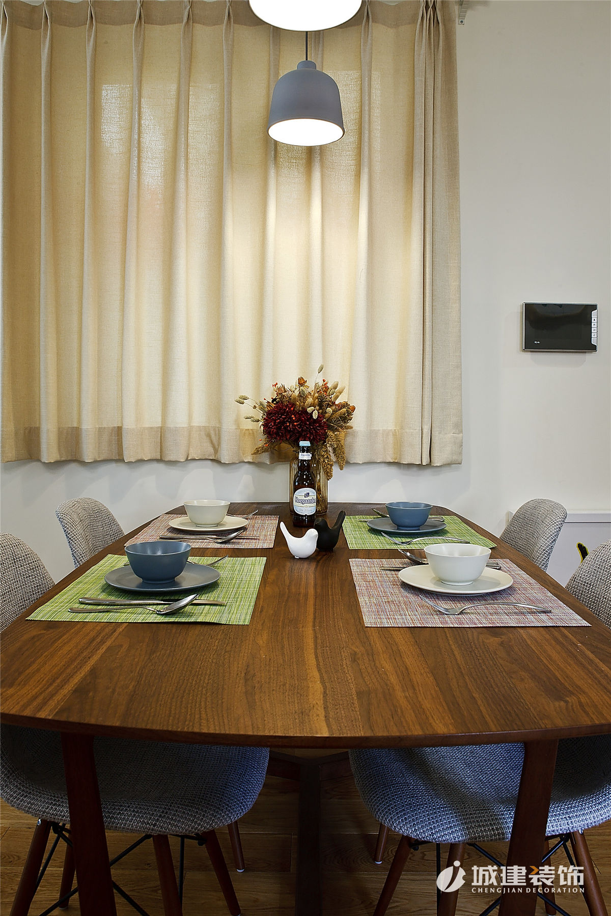 本案位于龍湖滟瀾山,屋子的主人是新婚小兩口,兩人都很喜歡北歐清新風(fēng)格。甫一入室便能將客餐廳全收入眼,藍(lán)灰草綠搭配的布藝沙發(fā),原木色餐桌配上布藝餐椅,極具個(gè)性的燈具也為整個(gè)空間增色不少。