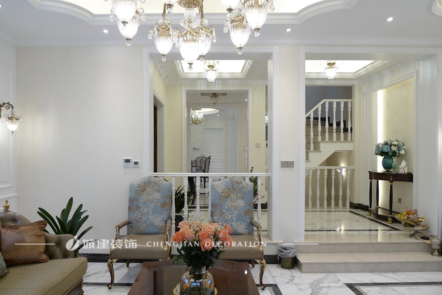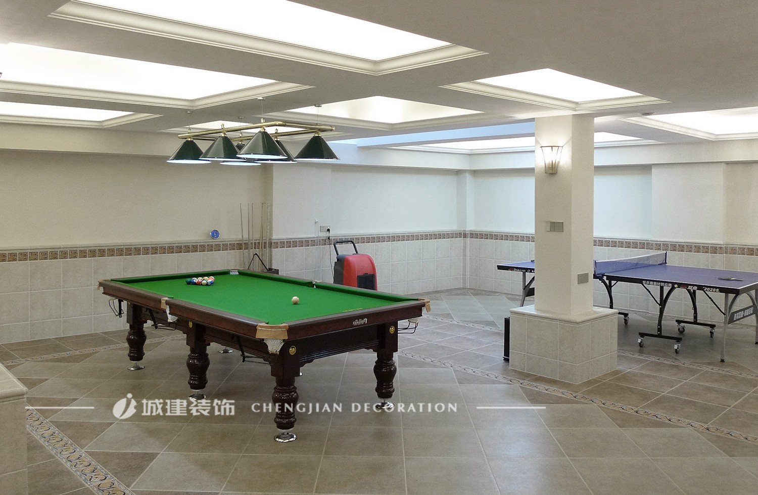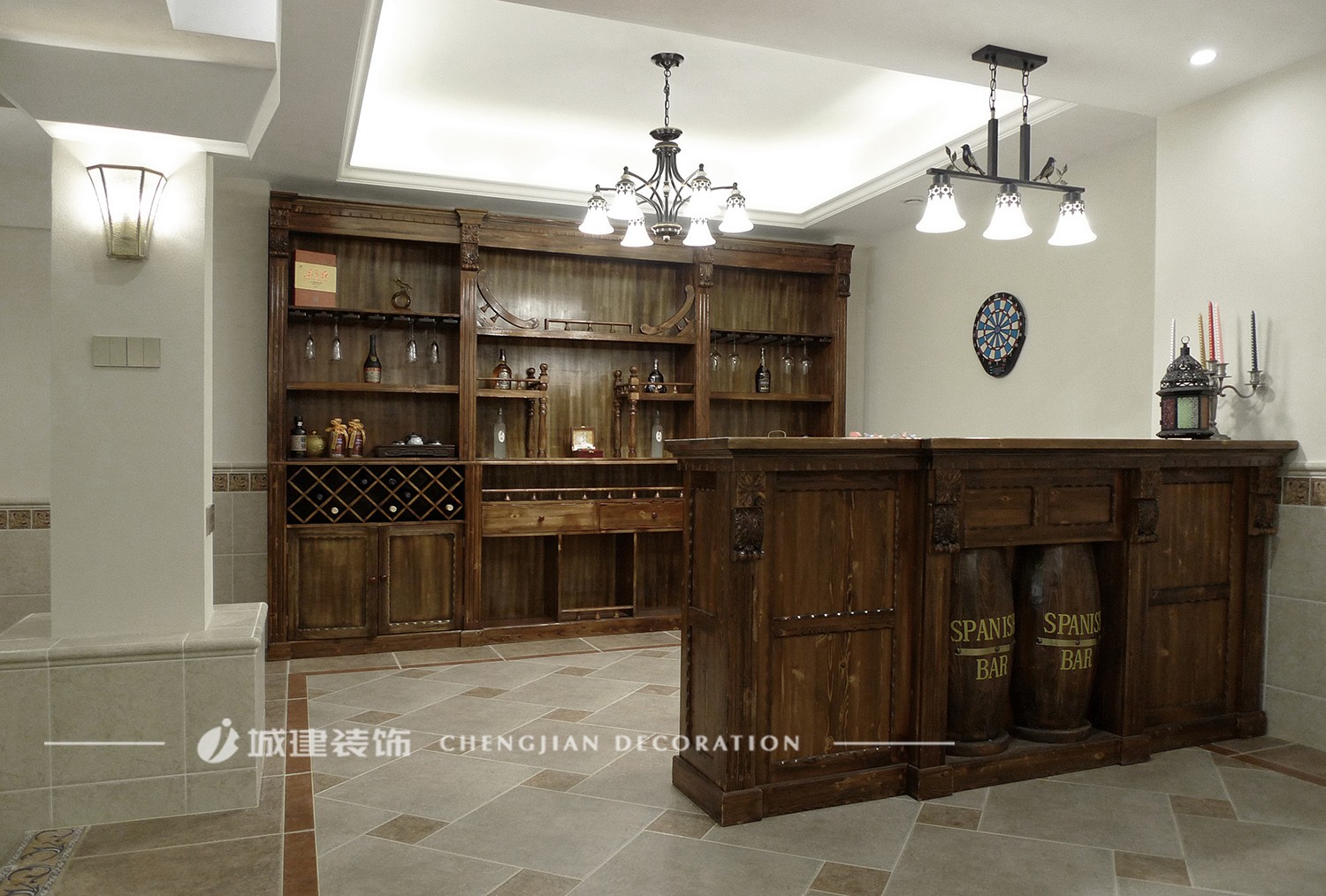 設計理念:本案為400方的排屋,設計定位以歐式風格為主。本案在設計規(guī)劃時,對原結構做了適當調(diào)整,特別是對原樓梯間做了部分改動,使空間利用率更高。一層為公共空間,二層規(guī)劃了兩間套房,很好的保證了業(yè)主的私密空間。地下一,二層的酒吧區(qū)、視聽區(qū)等為主人打造了一個浪漫的休閑空間,成為快節(jié)奏都市生活的休恬港灣. 本案吸取了歐式風格中的一些經(jīng)典元素,既不過分張揚,而又恰到好處營造出一個舒適,溫馨的居家空間.