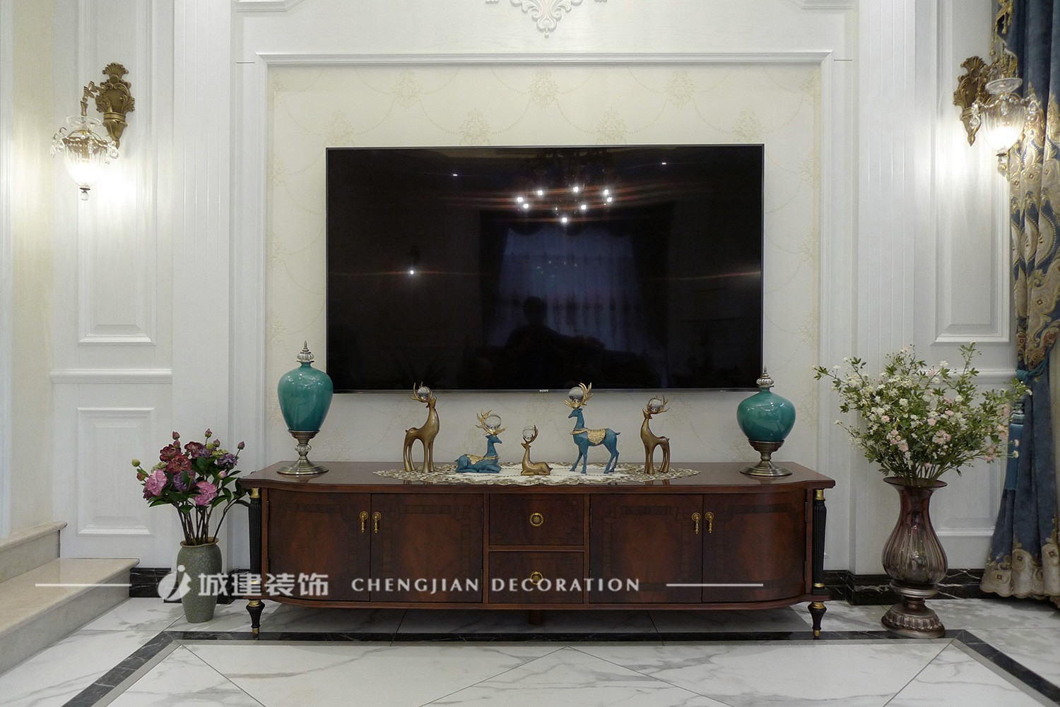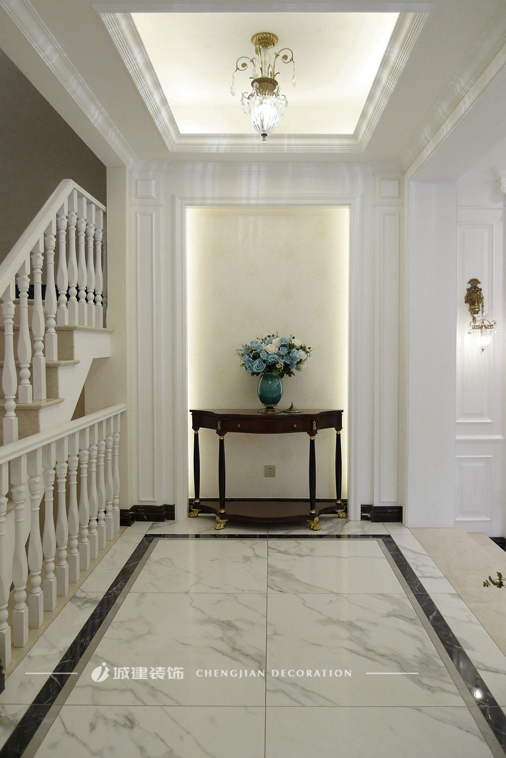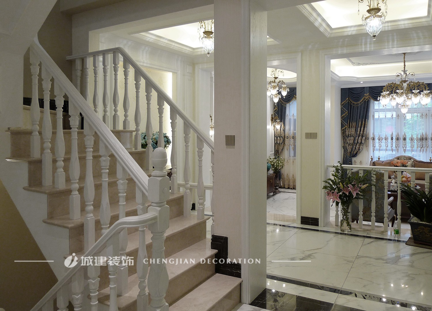 設計理念:本案為400方的排屋,設計定位以歐式風格為主。本案在設計規(guī)劃時,對原結構做了適當調(diào)整,特別是對原樓梯間做了部分改動,使空間利用率更高。一層為公共空間,二層規(guī)劃了兩間套房,很好的保證了業(yè)主的私密空間。地下一,二層的酒吧區(qū)、視聽區(qū)等為主人打造了一個浪漫的休閑空間,成為快節(jié)奏都市生活的休恬港灣. 本案吸取了歐式風格中的一些經(jīng)典元素,既不過分張揚,而又恰到好處營造出一個舒適,溫馨的居家空間.