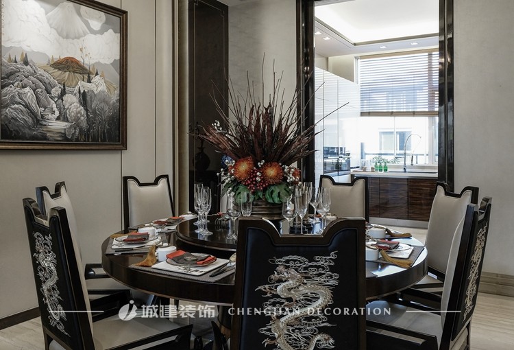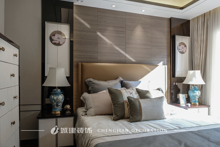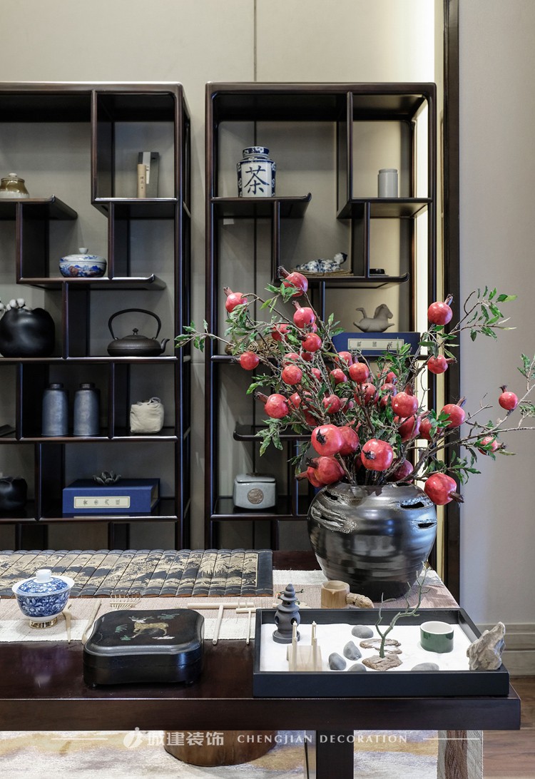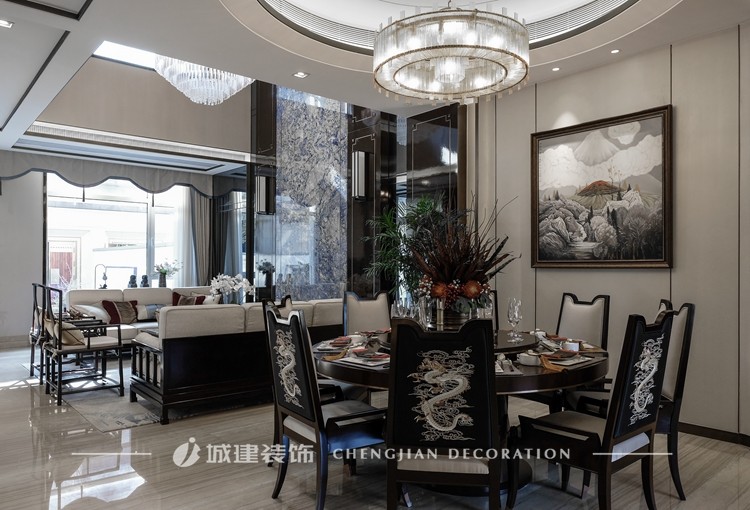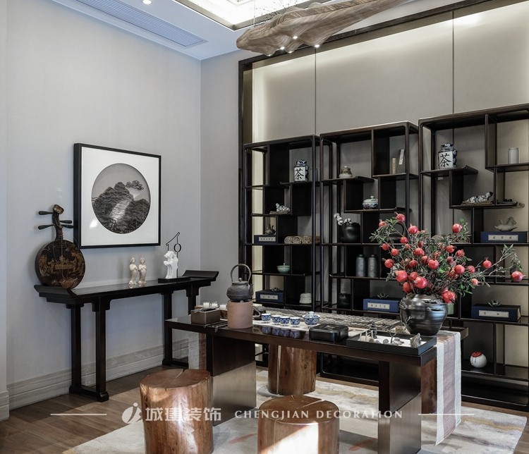 全屋精致的線條勾勒、材質(zhì)的運(yùn)用及軟裝陳列都體現(xiàn)出中式的韻味與儀式感。
