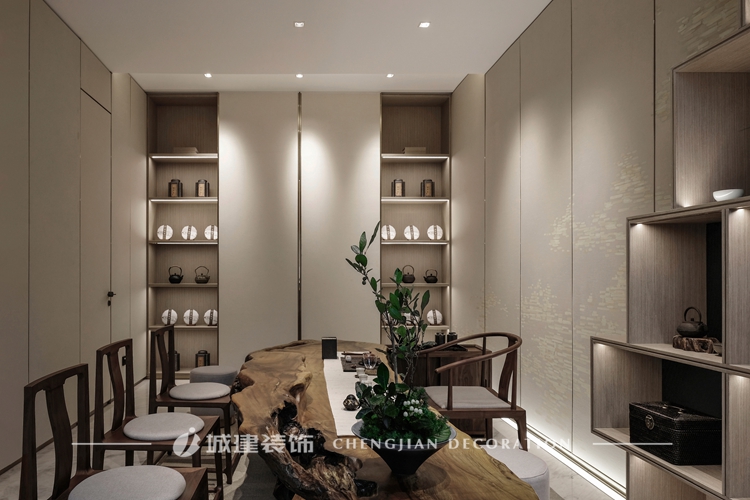 穿過(guò)會(huì)客廳往里走就是茶室。