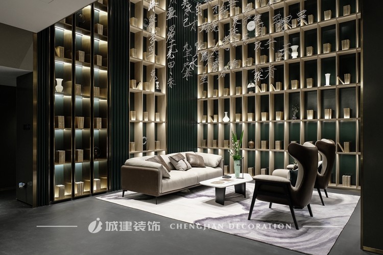 挑空區(qū)域的偏廳位置,兩面頂天立地的置物架,仿佛置身藏經(jīng)閣;