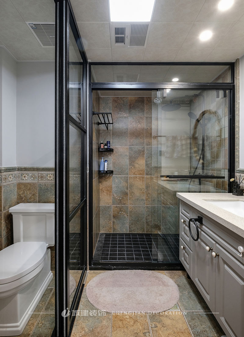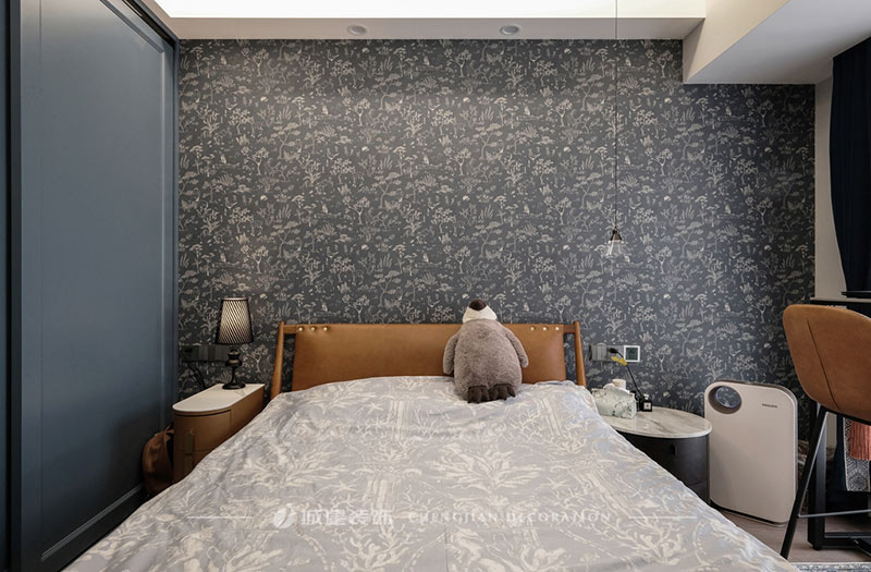 墻裙設(shè)計,讓空間層次感更立體,藍灰與淺灰的低飽和色彩搭配,質(zhì)感高級且溫柔;