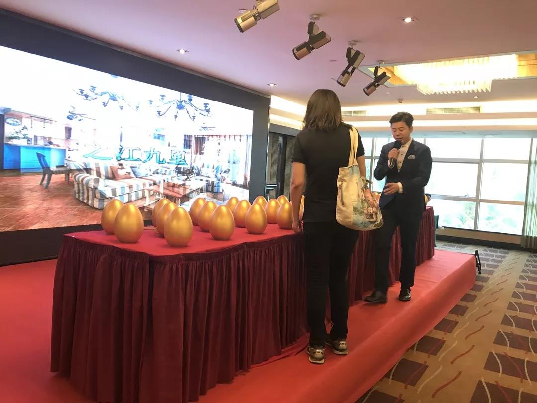 活動場內的重頭戲——砸金蛋!現(xiàn)場簽約的業(yè)主朋友們都有金花四濺的機會,西門子冰箱、松下智能馬桶蓋、掃地機器人、空氣凈化器...通通砸回家!講臺上人數(shù)幾度多到需要排隊砸金蛋,哈哈~