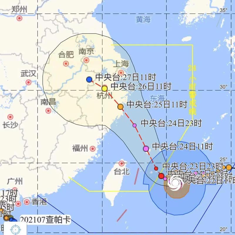 后逐漸向浙江省沿??拷瑢⒂?4日夜里到25日白天在浙江沿海登陸,