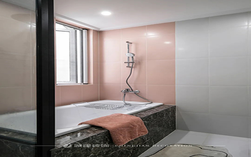 美式風格是自由的,本家裝案例中其余空間都用較為沉穩(wěn)的顏色,而衛(wèi)生間卻反其道而行,選擇了少女心的粉色與白色拼接,