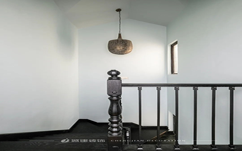 樓梯扶手選擇與外立面呼應的黑色,搭配白色的墻面,簡潔干練;造型獨特的大型銅吊燈,讓樓梯間簡約而不簡單,讓其成為可觀賞的一景兒~