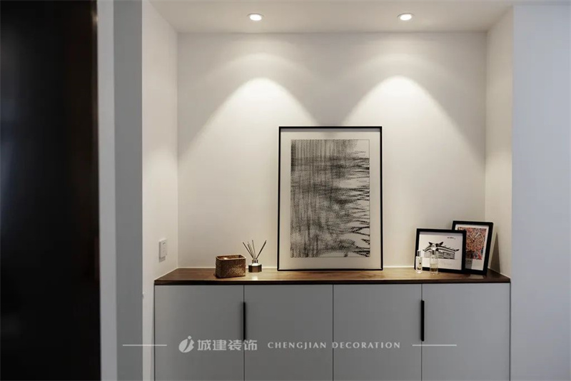 而“無主燈設(shè)計(jì)”,即是舍棄主燈,改由多種類(筒燈、射燈、壁燈、線燈等)、多個光源多點(diǎn)分布,創(chuàng)造柔和均亮的效果。在光影的呈現(xiàn)上,不同種類的光源、不同角度的照射,可以塑造出洗墻、光氛暈染等不同的光線效果,讓空間層次更豐富;且可以根據(jù)需求只開啟部分光源,這樣也節(jié)能節(jié)電。