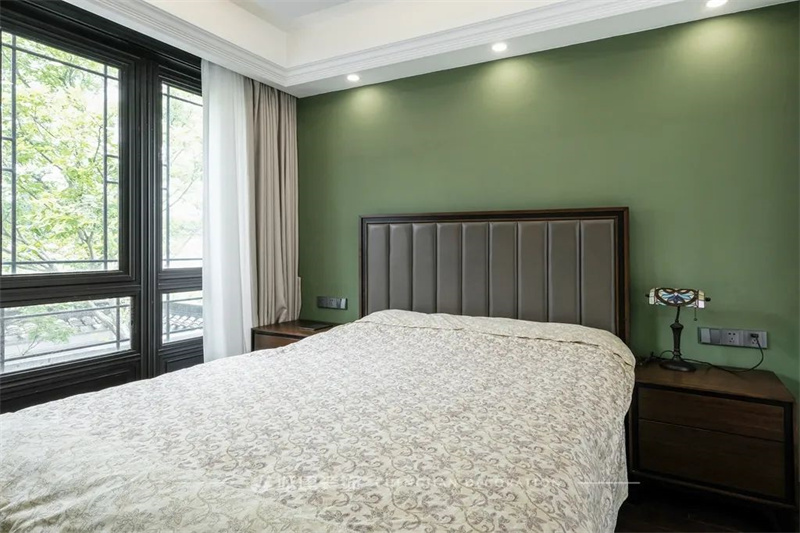 一般以筒燈或吊頂內(nèi)嵌式燈帶作為主要照明,位置避開頭頂上方,以免直射眼睛,筒燈安排在吊頂四周以及過道。另外,可以在床頭柜上方安排線性吊燈,其與臺燈的功能一樣,但節(jié)省了臺燈占用的空間。