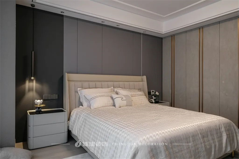 臥室也不再有一定需要床頭的概念,床頭可以演變成一面床頭背景墻,也可以和收納柜很好的結(jié)合,床頭柜與床一體,不僅充分利用每一寸空間,也讓整個臥室看起來更具高級感和整體感。