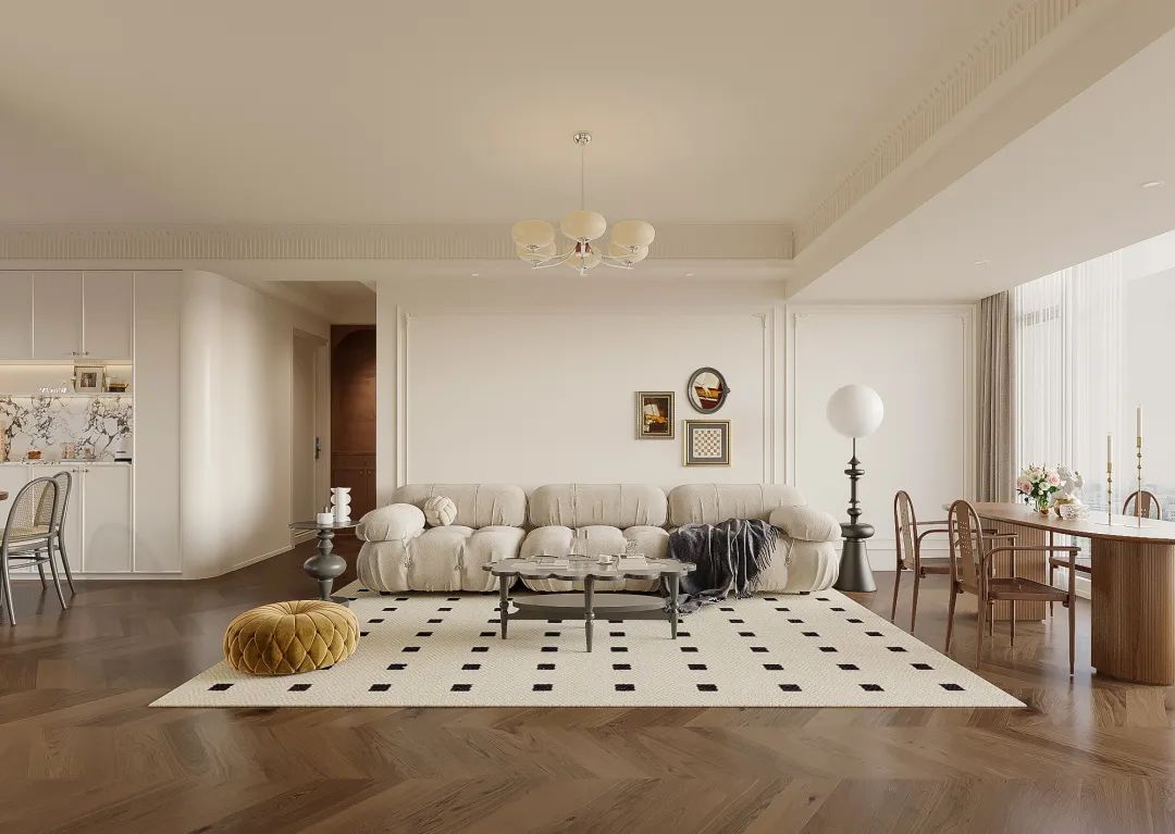 整墻鋪,配合石膏線條,在墻面營造立體感,讓空間更精致高級,再搭配石膏角花,讓空間更優(yōu)雅。
