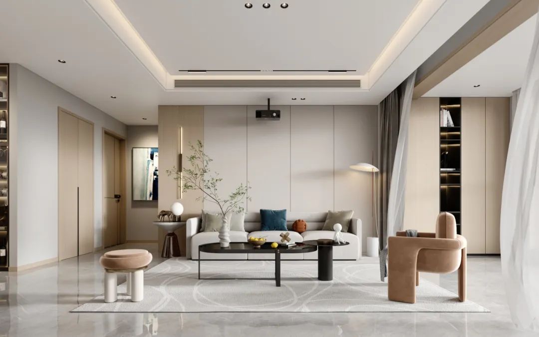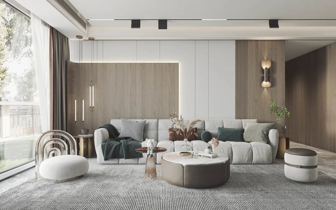 木飾面背景墻,可以選擇整墻設(shè)計,也可以選擇半墻設(shè)計或個性形狀,賦予空間更多樣性。