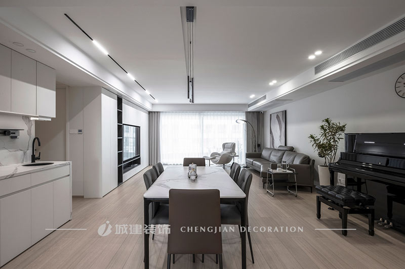 擯棄華麗的裝飾,打破區(qū)域之間的隔閡,創(chuàng)造一個包容性強的寬敞空間,給予家人之間更好的互動。