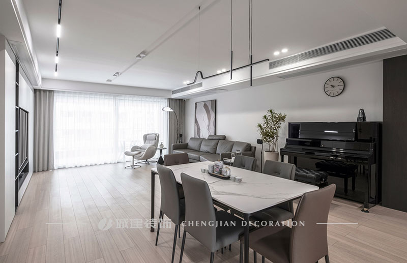 往里走便是明亮的客餐廳,一體的布局讓視線豁然開朗:
