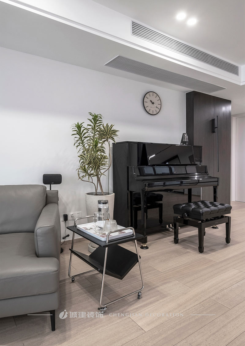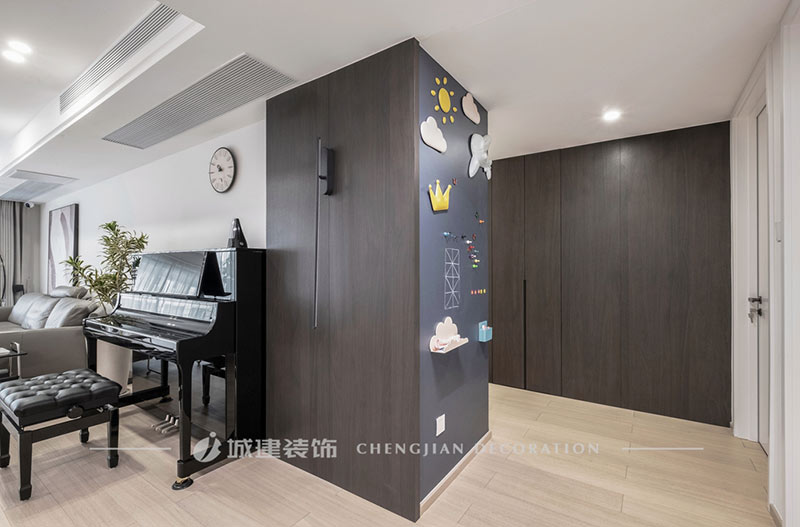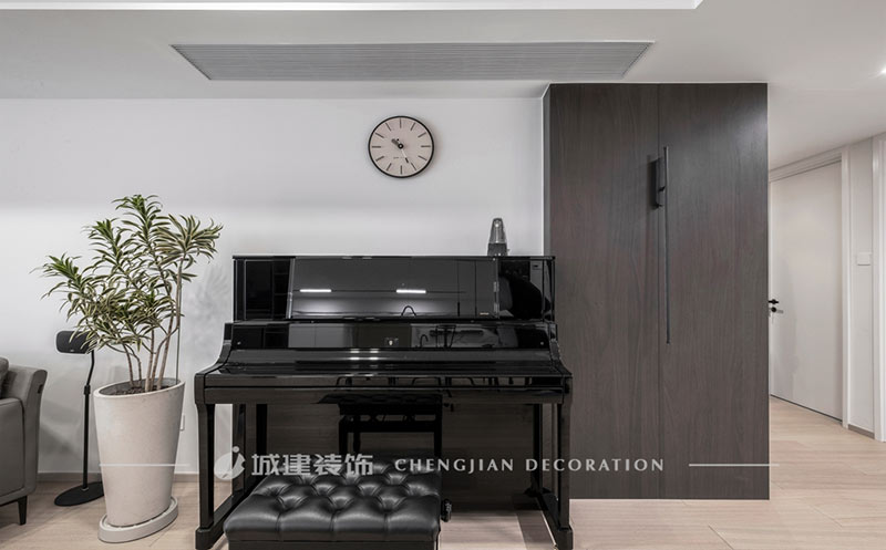 ②. 鋼琴依墻放置在沙發(fā)旁,孩子在練習鋼琴的時候,家人就是最好的聽眾,音符在空間里暢游,一起盡情享受音樂的美好。
