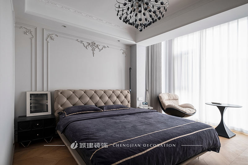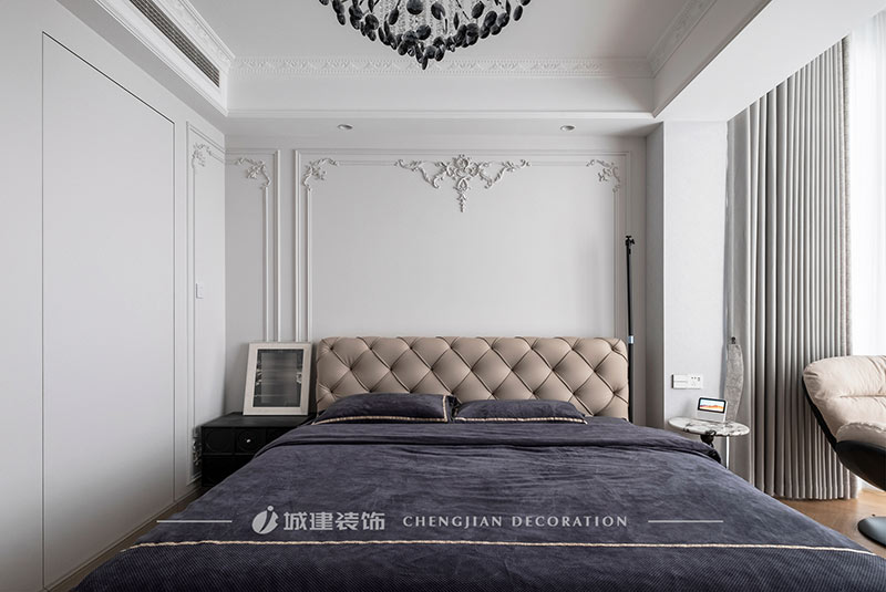 墻壁上的石膏線條裝飾,展現(xiàn)法式的浪漫氣息,在這里每天都能進(jìn)入甜美夢鄉(xiāng)。
